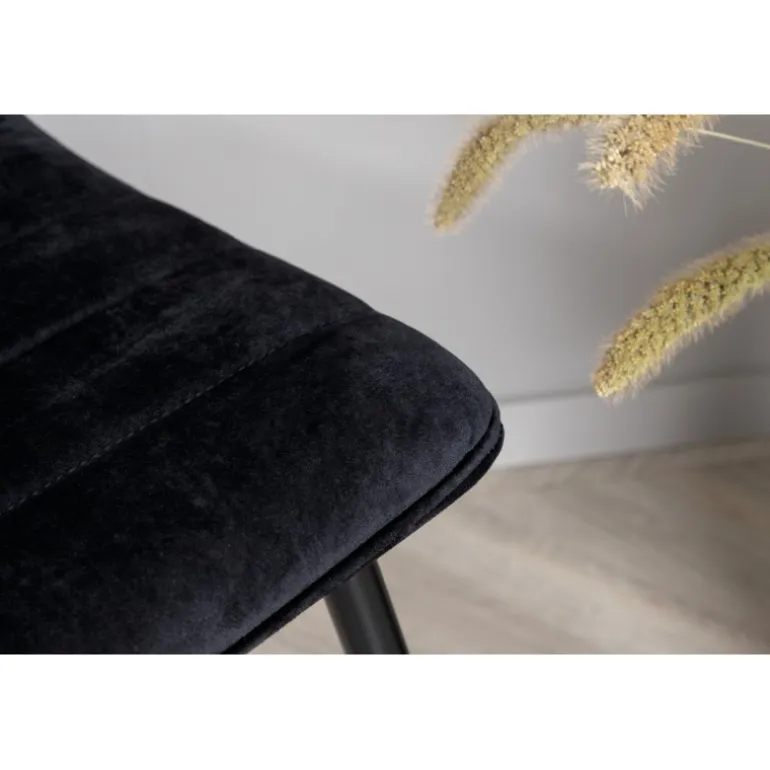 Solid og fløjlsblød spisebordsstol, der fanger øjet og imponerer med både komfort og stil! Windu luksusstol har et konsekvent sort design med lige nordiske former. Stolen er i sort fløjl og polyesterstof, og stolens ben er let udfladede i jern. Match med et overdådigt spisebord for at fuldende et spisebordssæt, der vil pryde hjemmets hjerte! Vedligeholdelsesråd: Fløjl har tendens til at få aftryk, når luven lægger sig ned. Indtrykkene kan få stoffet til at se slidt ud, hvilket er helt normalt for denne type materiale. Afhængigt af hvordan lyset falder, kan stoffet skifte i flere forskellige nuancer.