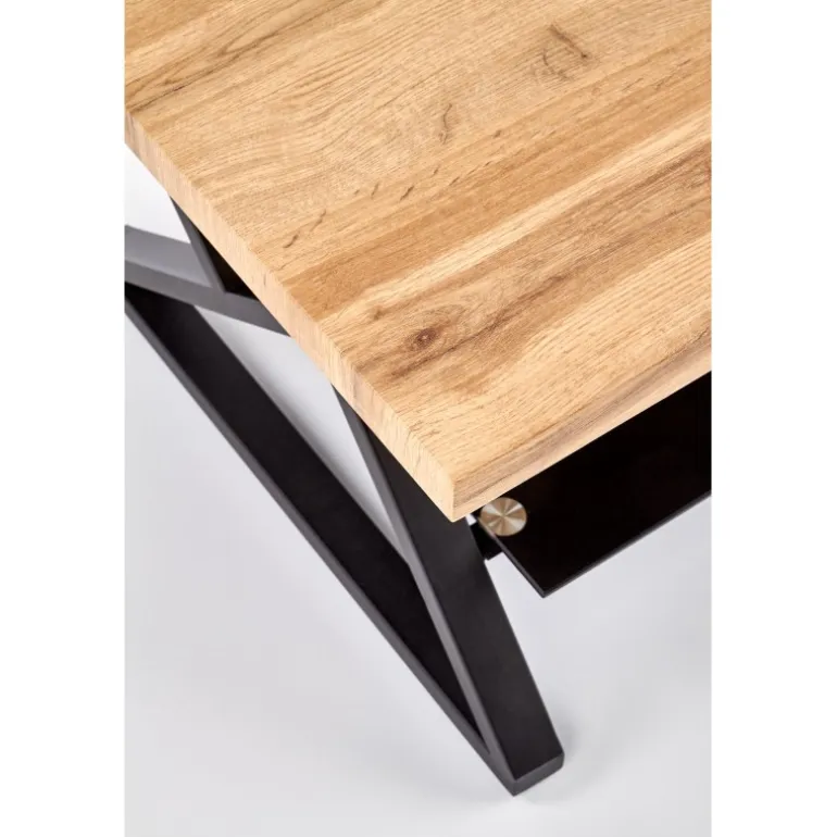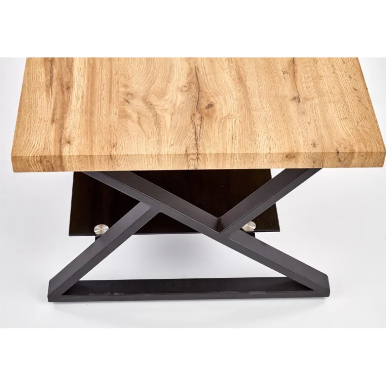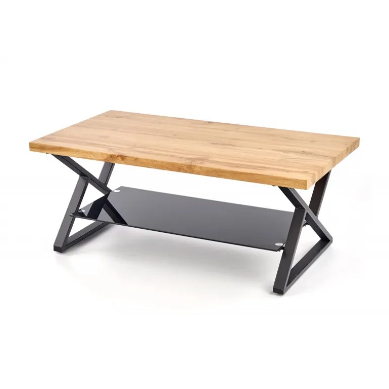 XENA rektangulær sofabord er den perfekte kombination af stil og funktionalitet til din stue. Med dimensionerne 110/60/45 cm passer det ideelt i de fleste rum. Bordpladen er fremstillet af lamineret MDF med en naturlig egetræsfinish, som giver en varm og indbydende atmosfære. Det Sorte pulverlakerede stål understel og de elegante glasdetaljer tilføjer et moderne touch, der komplementerer enhver indretning. Dette sofabord er både robust og æstetisk tiltalende, hvilket gør det til et must-have møbel.