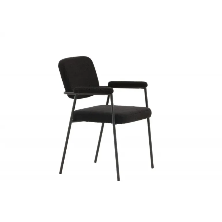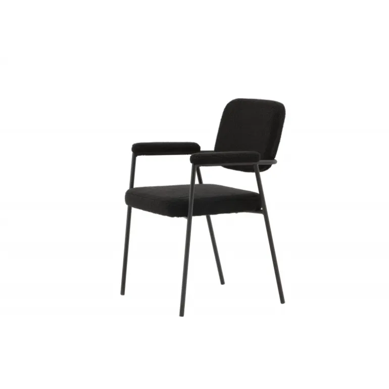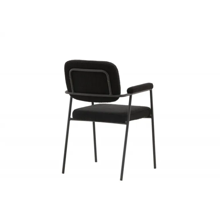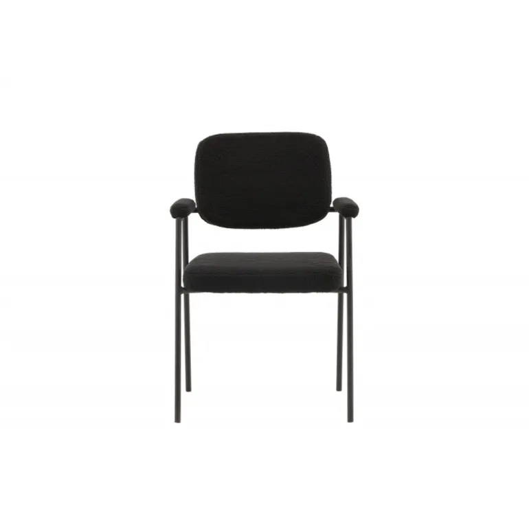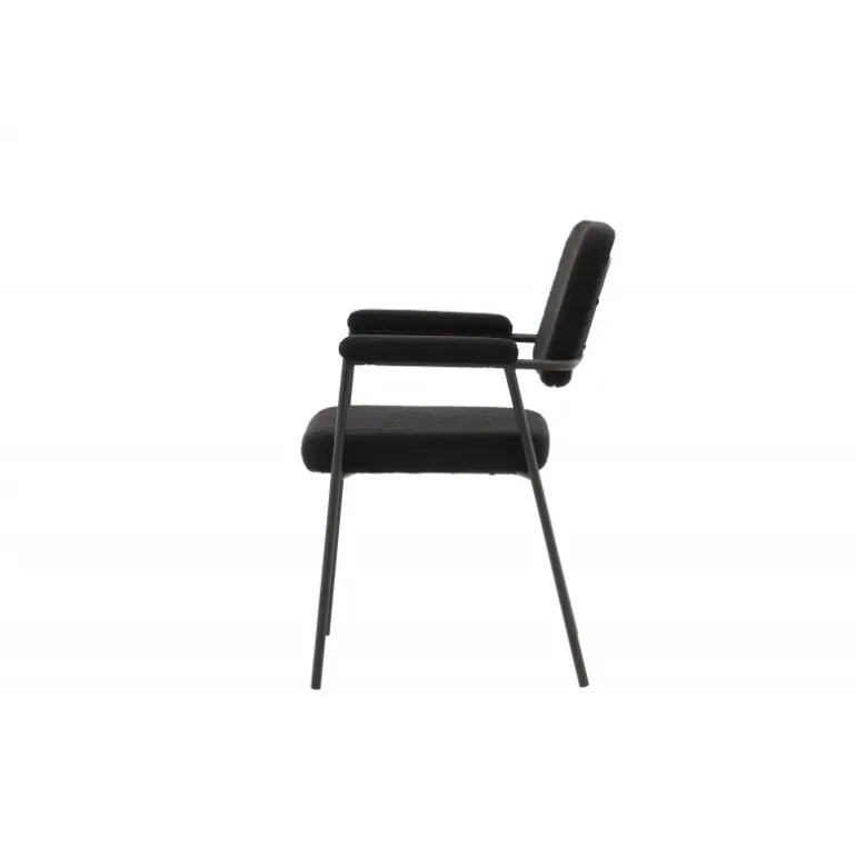 Indret dit hjem med charmerende og indbydende spisebordsstole fra Yesterday-serien! Denne lækre stol i skandinavisk design har et fuldt polstret sæde i sort bouclé-stof og slanke stoleben med integrerede armlæn i sort metal. Det bløde sæde er stoppet for ekstra komfort og inviterer til lange, hyggelige middagsstunder. Match med et flot spisebord for at få en komplet Spisebordssæt til hjemmets hjerte!