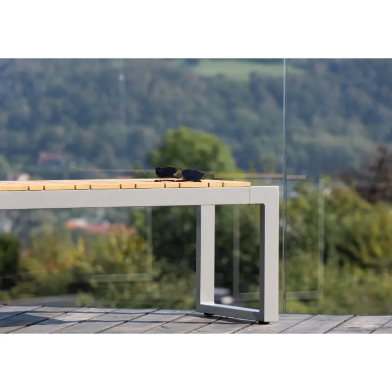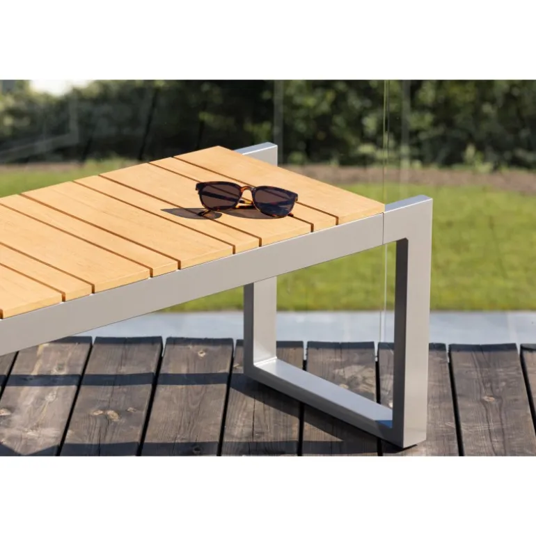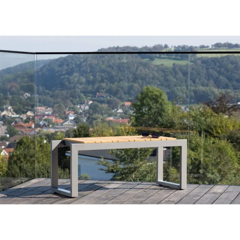 - Elegant design: Stilfuld aluminiumsramme og bæredygtigt teaktræssæde.
