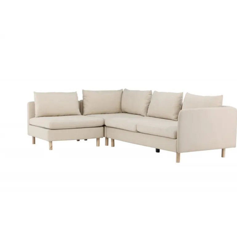 Oplev komfort og funktionalitet i perfekt harmoni med vores hjørnesofa, Zero. Denne vidunderlige sofa i en varm beige nuance er lavet af højkvalitets polyester, hvilket giver den en følelse af luksus og holdbarhed. Med plads nok til alle er Zero det ultimative møbel til sociale sammenkomster og afslappede øjeblikke. Sofaen er elegant hævet af sine smukke træben, hvilket giver den et moderne og luftigt udseende. Uanset om du vil krølle dig sammen med en bog, se din yndlingsfilm eller invitere venner og familie til en hyggelig aften, giver Zero det perfekte sted at slappe af og nyde. Skab en følelse af ro i dit rum med Zero hjørnesofaen. Dens slanke design og komfortable siddepladser gør den til et uundværligt møbel i dit hjem. Få den afslapning og harmoni, du fortjener, med Zero – den ultimative hjørnesofa til dit hjem.