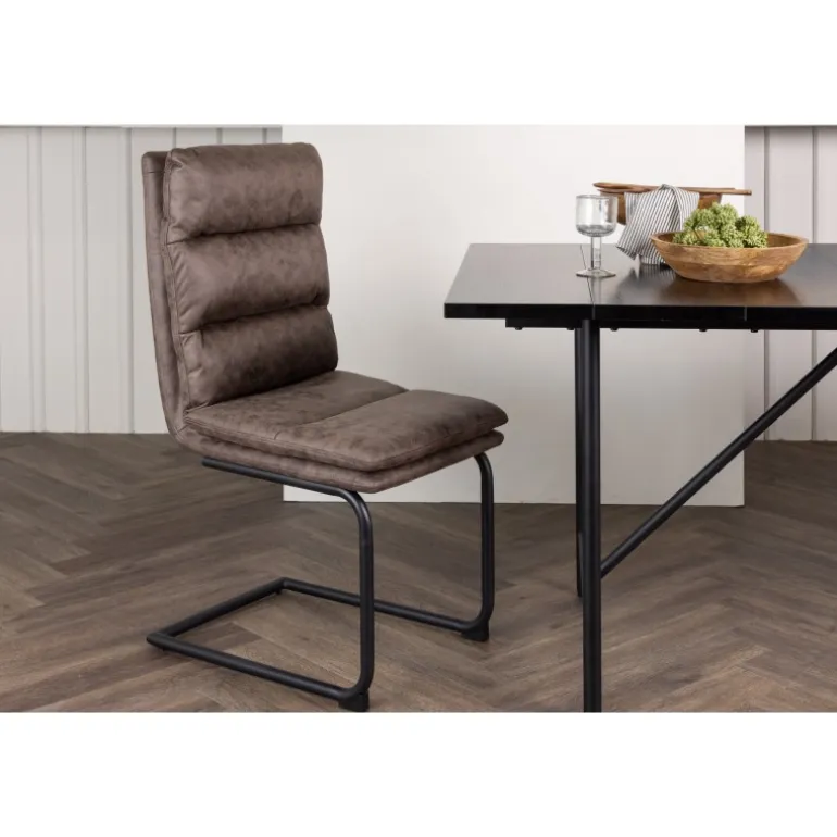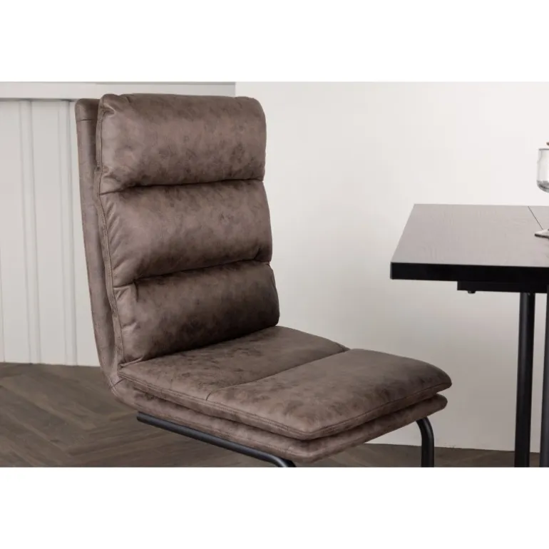 Lige så komfortabel som den er iøjnefaldende, vil spisebordsstolen Zizo helt sikkert blive en succes i hjemmets hjerte! Stolen har et lige, nordisk design med et rustikt udseende i sin mørkebrune farve. Lavet af holdbart mikrofiber og jernben for at give dig et møbel, der holder over tid. Match med et lækkert spisebord og nyd hyggelige måltider i dit hjem!