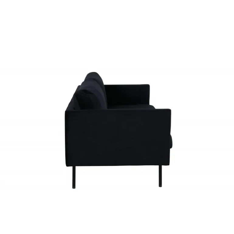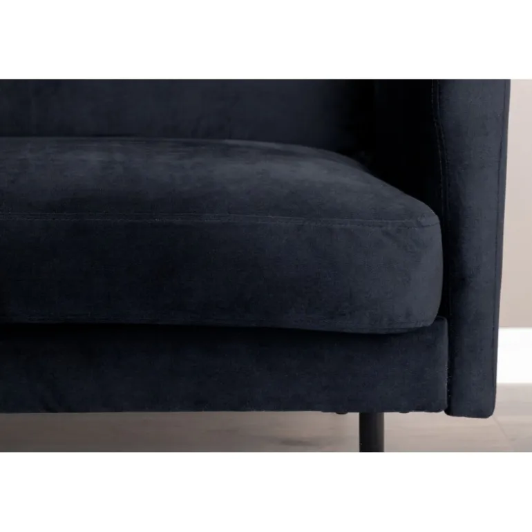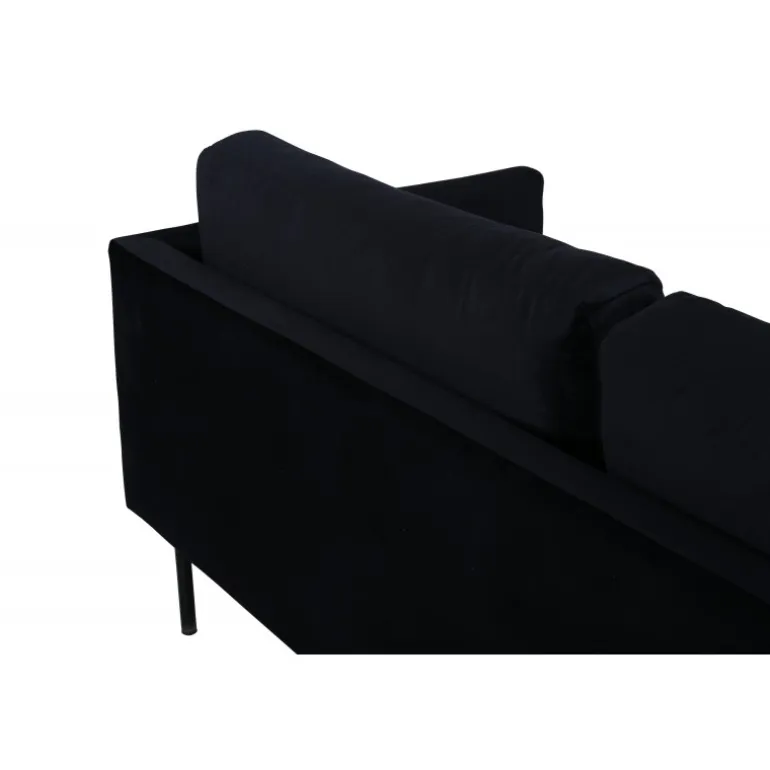 Zoom sofa-serien tilbyder både elegant design og høj siddekomfort. Indret dit hjem med denne pompøse 2 personers sofa i fræk sort fløjl og giv rummet en luksuriøs følelse. Designet er tidløst med lige nordiske former og stilfulde, smalle metalben, der er lidt højere for et luftigt look. En moderne sofadrøm, ganske enkelt! Sofaens dimensioner: Bredde: 181 cm, Dybde: 54 cm, Højde: 80 cm. Plejevejledning: Fløjl har en tendens til at få trykmærker, når luvet lægger sig ned. Trykmærkerne kan få stoffet til at se slidt ud, hvilket er helt normalt for denne type materiale. Afhængigt af hvordan lyset falder, kan stoffet ændre sig i forskellige nuancer.
