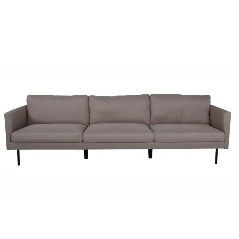 Med Zoom 3 personers sofa behøver du ikke gå på kompromis mellem stil og komfort! Denne sofa tilbyder den perfekte balance mellem afslapning og socialisering. Udført i en lækker beige/brun farve og stilfulde smalle ben i sort metal. De lige nordiske former, den moderne stilrenhed og den bløde polstring giver dig en indbydende sofa, der holder over tid. Ingen hjem er komplet uden den perfekte sofa! Sofaens dimensioner: Bredde: 262 cm, dybde: 54 cm, højde: 80 cm. Plejeråd: Sørg for, at dine møbler ikke står direkte i sollys. Brug tekstilspray til at imprægnere tekstilet, før du begynder at bruge det, det vil også gøre eventuel snavs og pletter lettere at fjerne i fremtiden. Fjern pletter med det samme, gnid ikke, men forsøg at suge dem forsigtigt op med en klud.