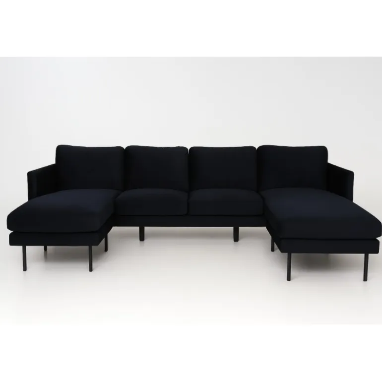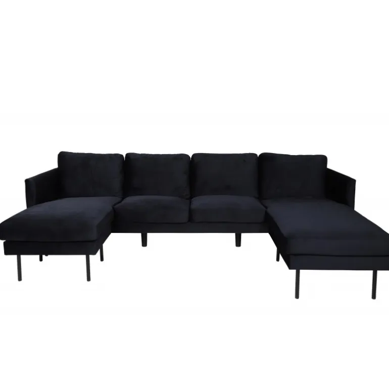 Division sofaen i Zoom-serien udstråler luksus og elegance – en ægte sofadrøm for alle Velour -elskere! I en fræk sort farve, skinnende Velour og blød polstring bliver denne sofa hurtigt en favorit efter en lang dag på arbejde. Lige så komfortabel som stilfuld, sofaen har et iøjnefaldende design med to chaiselonger, lige nordiske former og generøs siddeplads til hele familien. De smalle ben er i sort metal. Lad tiden her blive dagens højdepunkt! Plejeråd: Velour har en tendens til at få trykmærker, når bunken lægger sig. Trykmærkerne kan få stoffet til at se slidt ud, hvilket er helt normalt for denne type materiale. Afhængigt af hvordan lyset falder, kan stoffet ændre sig i forskellige nuancer.