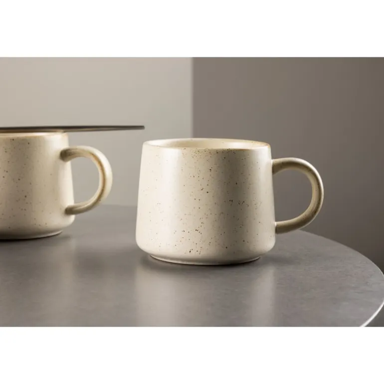 - Moderne design: Beige kop med små sorte prikker for et trendy look.