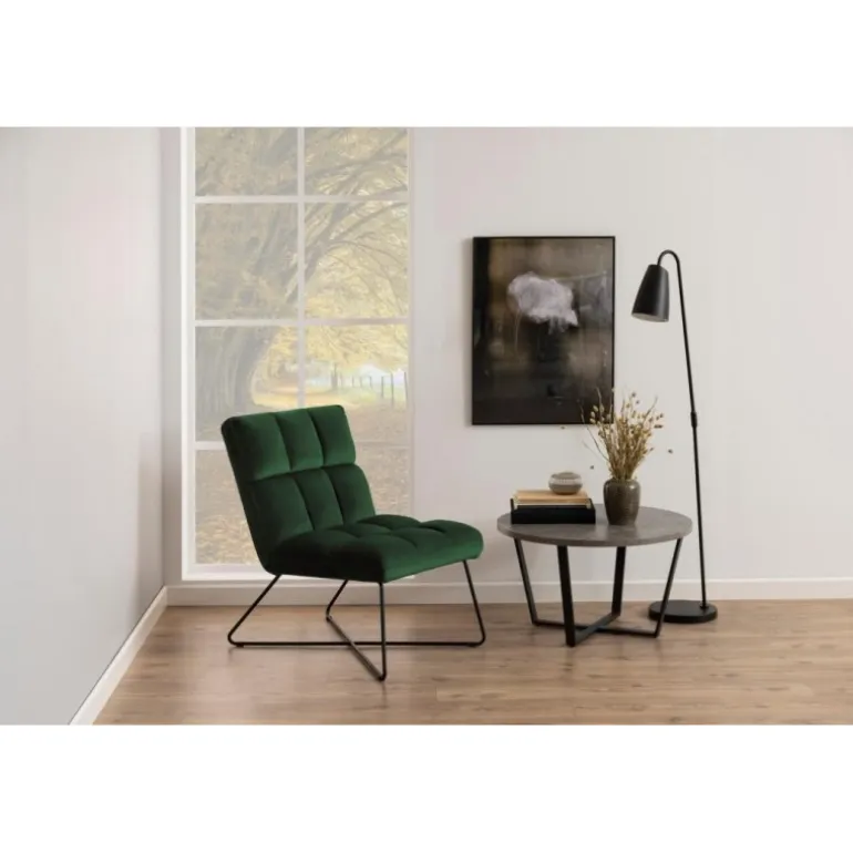 Alba loungestol VIC stof skovgrøn 68AC, stel metal pulverlakeret, mat sort