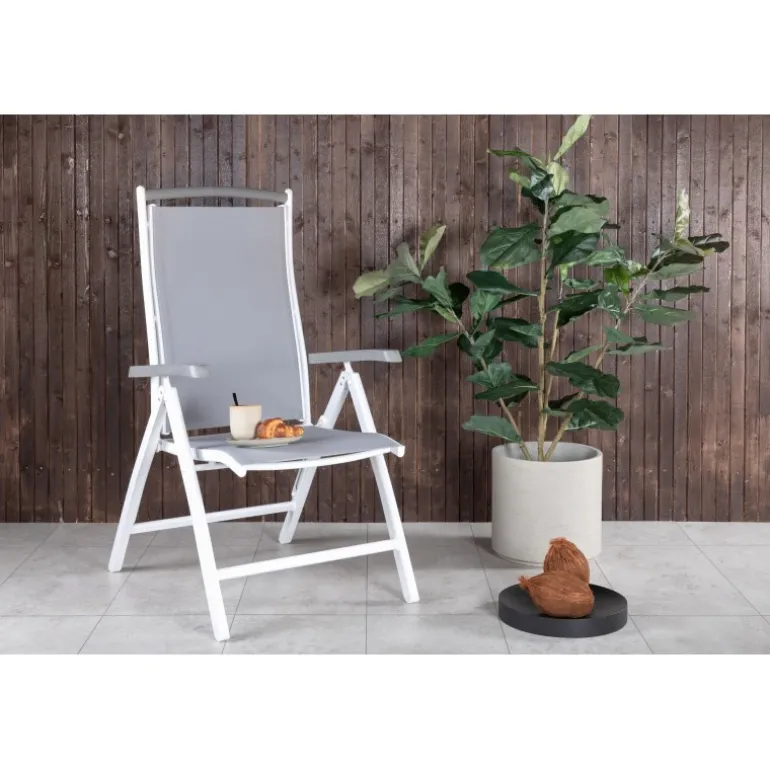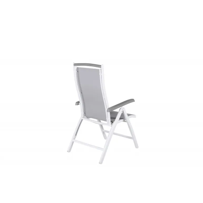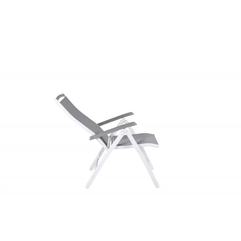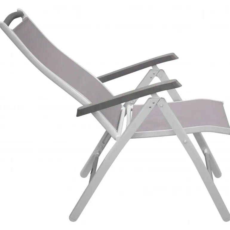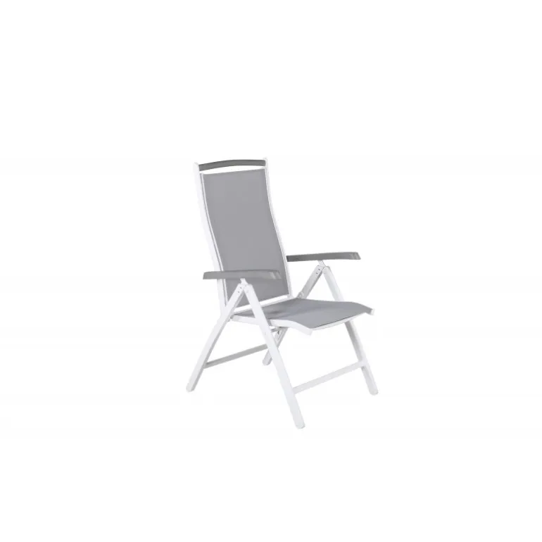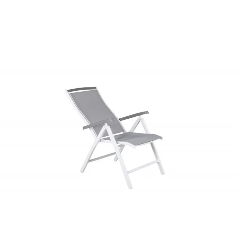 Albany – lige så komfortabel som praktisk og stilfuld! En grå 5-positioners stol med lækre armlæn for ekstra komfort. Ryglænet er foldbart for optimal bekvemmelighed. Stolen klarer sig lige så godt i haven som på balkonen. Nyd sommeren på den bedste måde! Plejeråd: Textilene er et syntetisk stof lavet af PVC-behandlet polyester. Materialet er vandafvisende og UV-behandlet for at modvirke solens blegning. Rengøring bør ske cirka en gang om måneden, brug en fugtig klud og tør af.