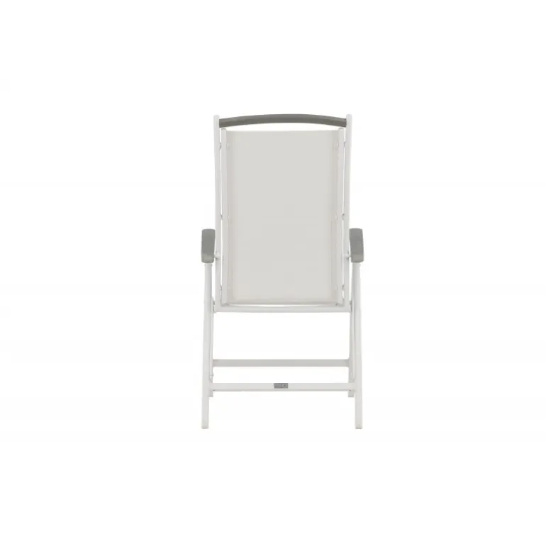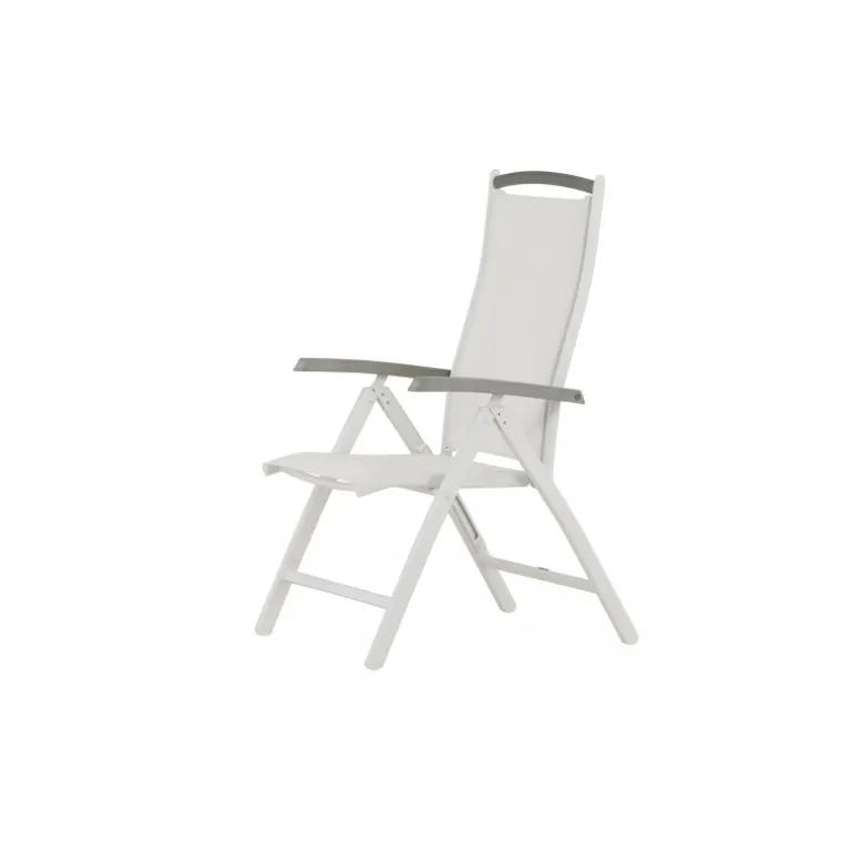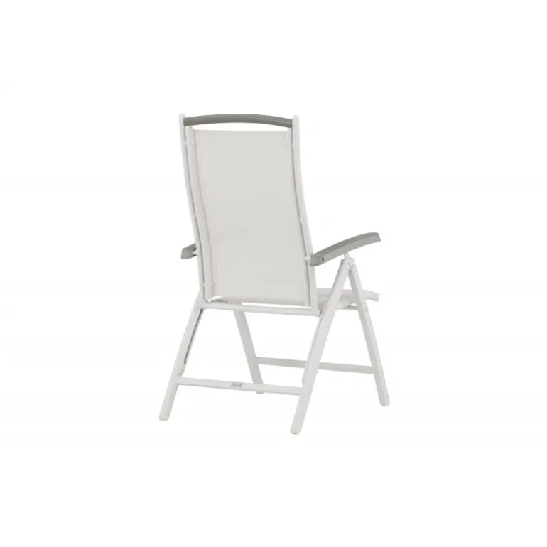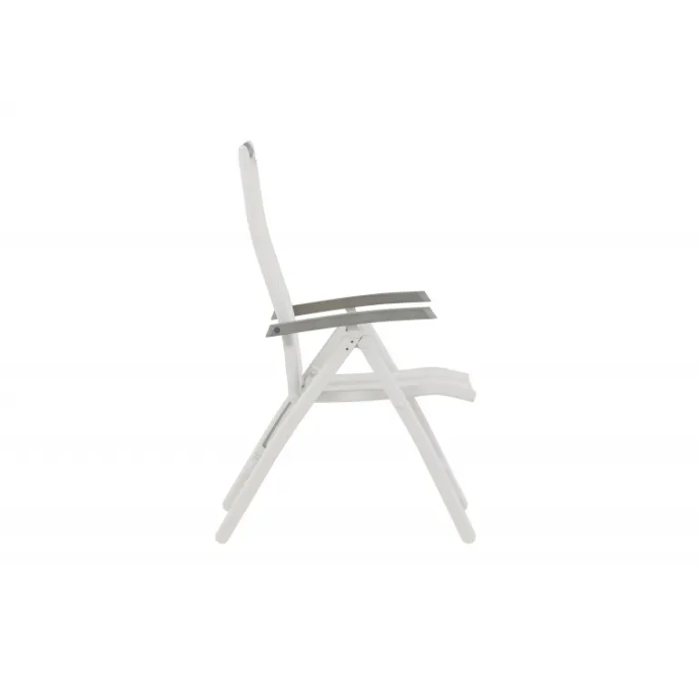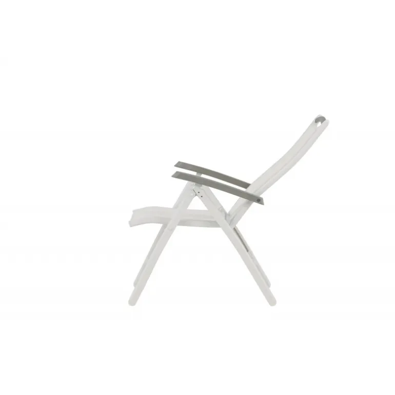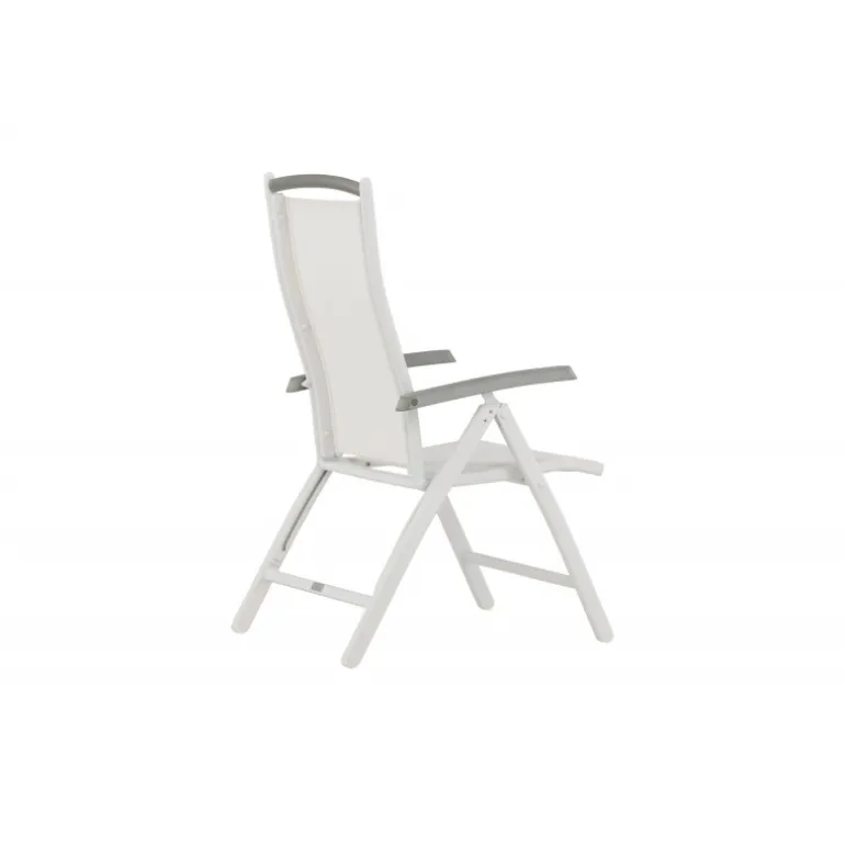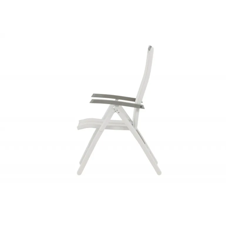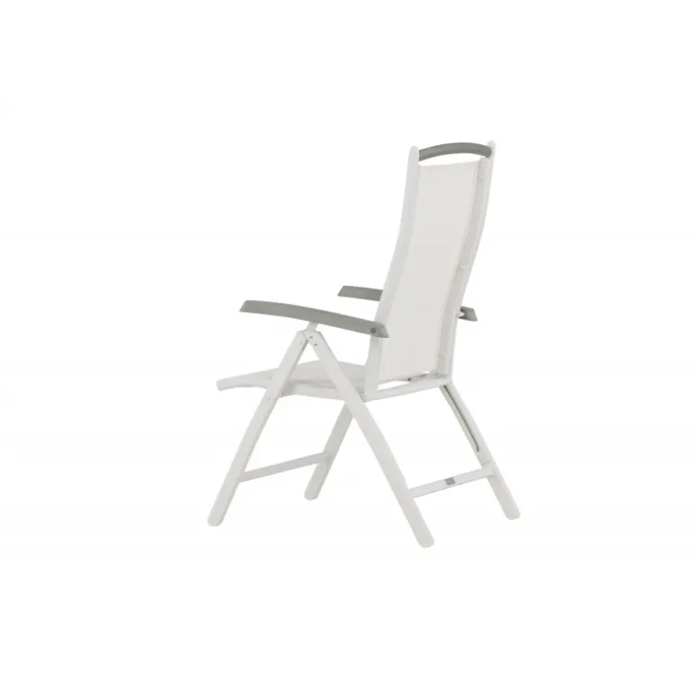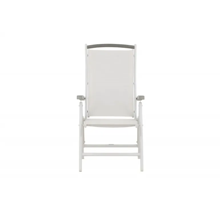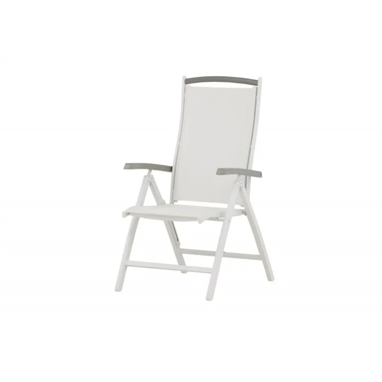 Albany – lige så komfortabel som praktisk og stilfuld! En hvid 5-Havestol med dejlige armlæn for ekstra komfort. Stolen fungerer lige så godt i haven som på altanen. Nyd sommeren på den bedste måde! Plejeinstruktion: Textilene er et syntetisk stof lavet af PVC-behandlet polyester. Materialet er vandafvisende og UV-behandlet for at modvirke solens blegning. Rengøring bør foretages cirka en gang om måneden, brug en fugtig klud og tør efter.