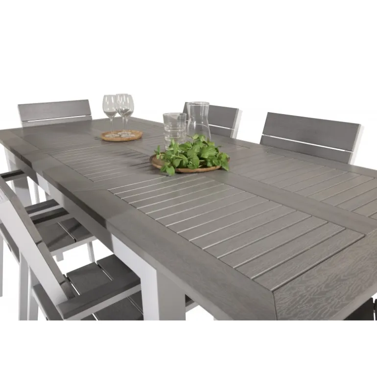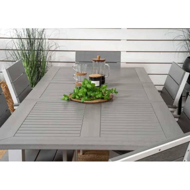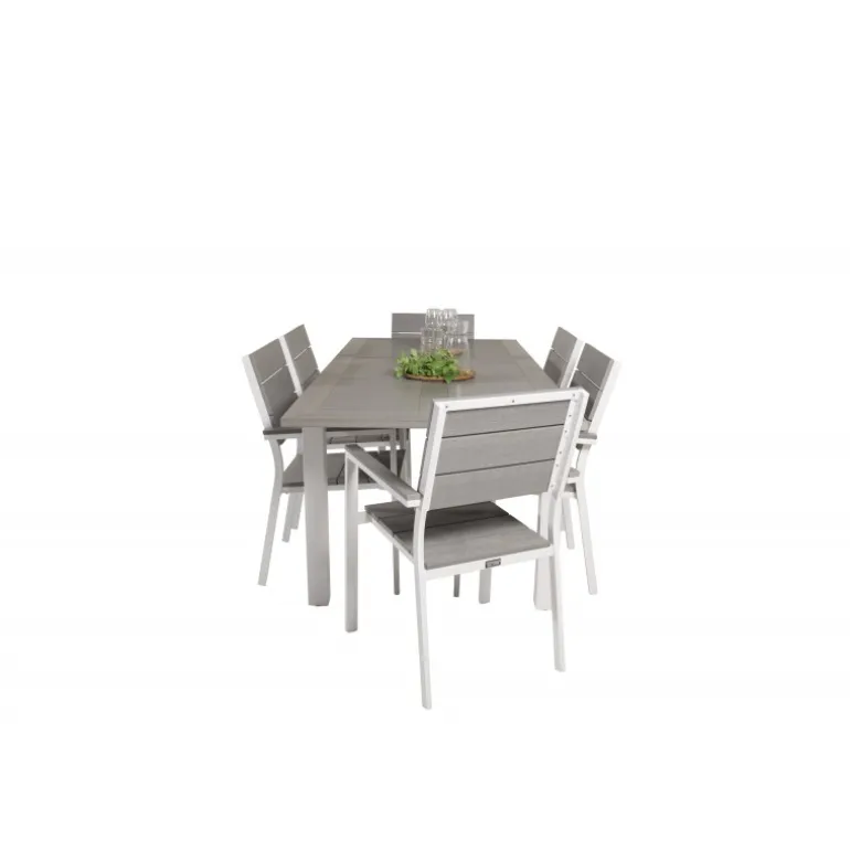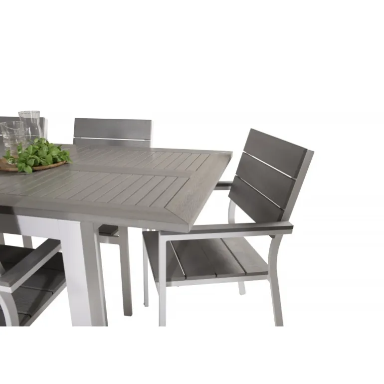 En trendy Loungesæt – Havemøbelsæt i lækker gråskala går aldrig af mode! Indret din terrasse med spisebordet Albany i klassisk stil sammen med stilfulde spisebordsstole fra Levels-serien. Lad terrassen karakteriseres af din nye iøjnefaldende Loungesæt – Havemøbelsæt, der kan rumme plads til alle dine kære!