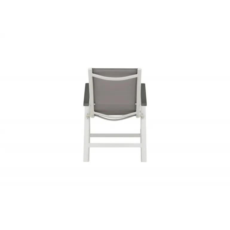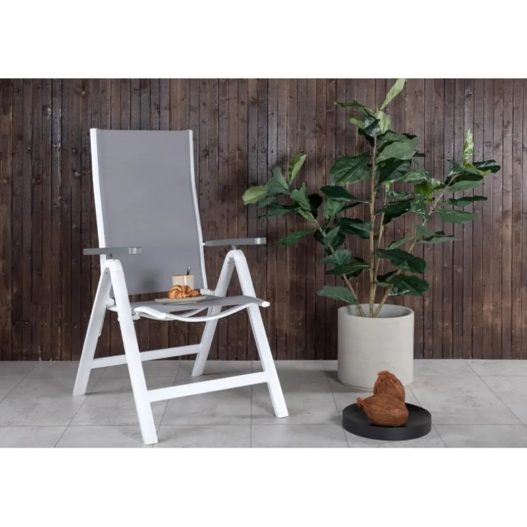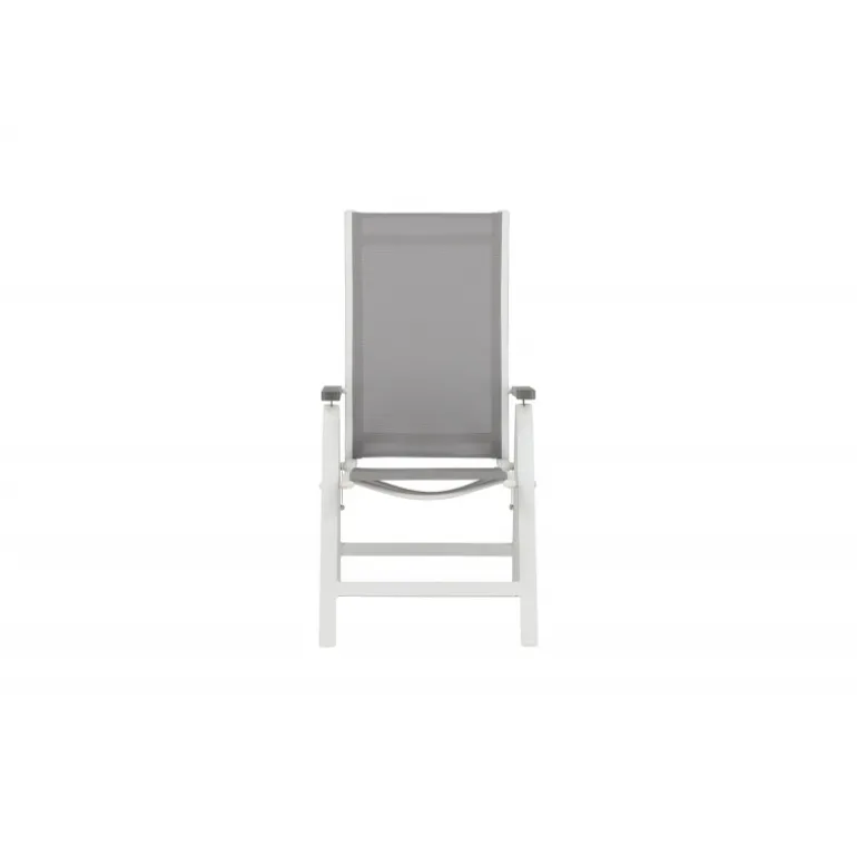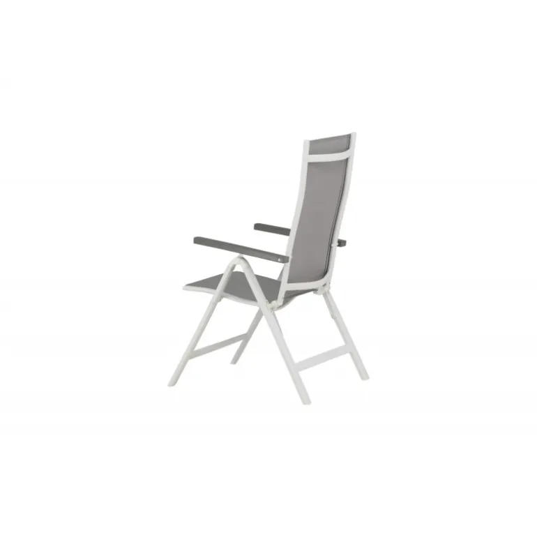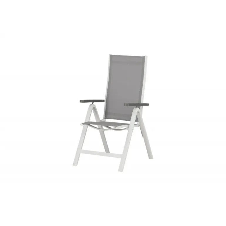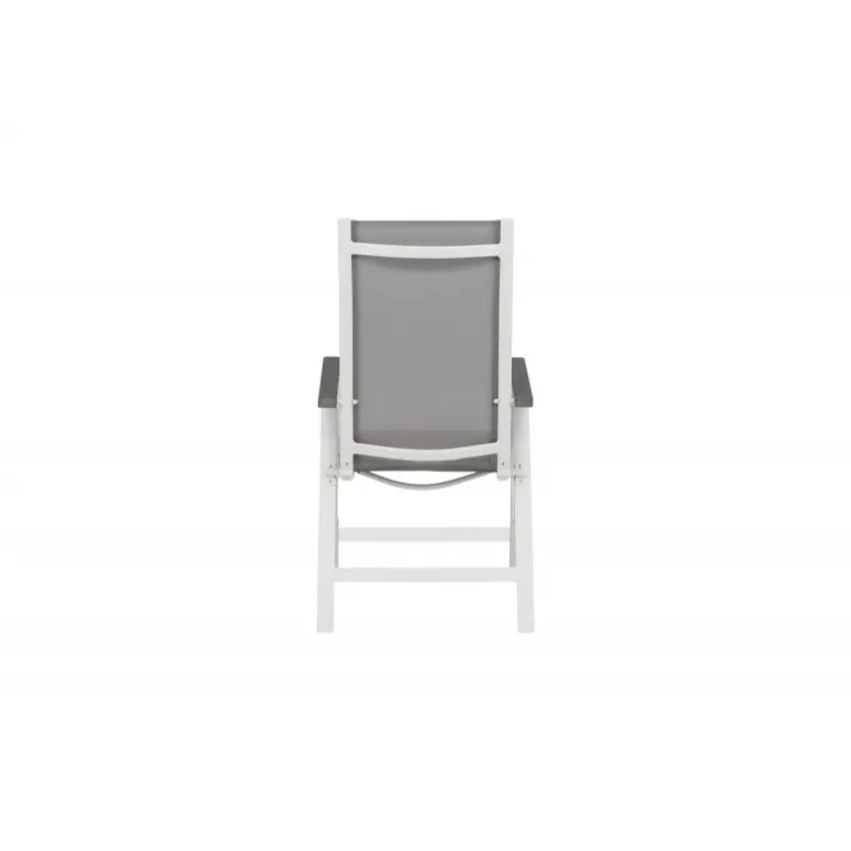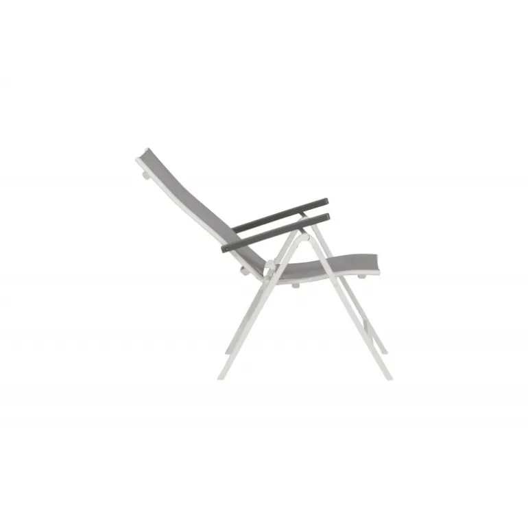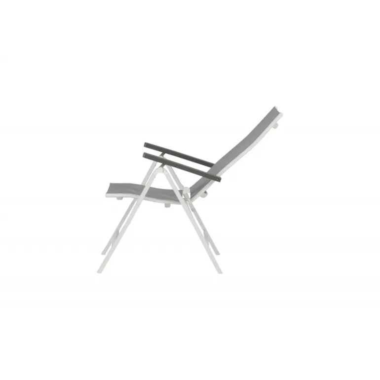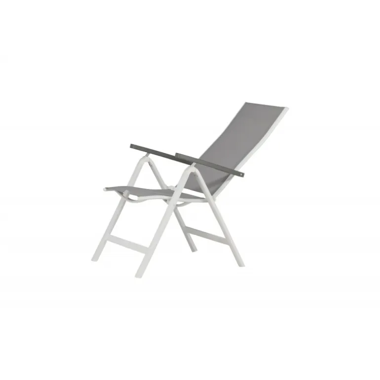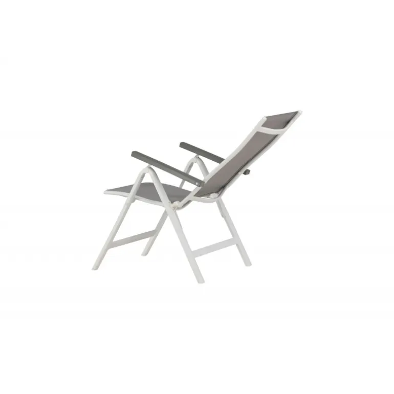Albany – så behagelig, praktisk og stilfuld! En grå 5-positions stol med lækre armlæn for ekstra komfort. Ryggen er foldbar for optimal bekvemmelighed. Stolen passer lige så godt i haven som på altanen. Nyd sommeren på den bedste måde! Plejeråd: Textilene er et syntetisk stof lavet af PVC-behandlet polyester. Materialet er vandafvisende og UV-behandlet for at modvirke solens blegning. Rengøring bør ske cirka en gang om måneden, brug en fugtig klud og tør af.