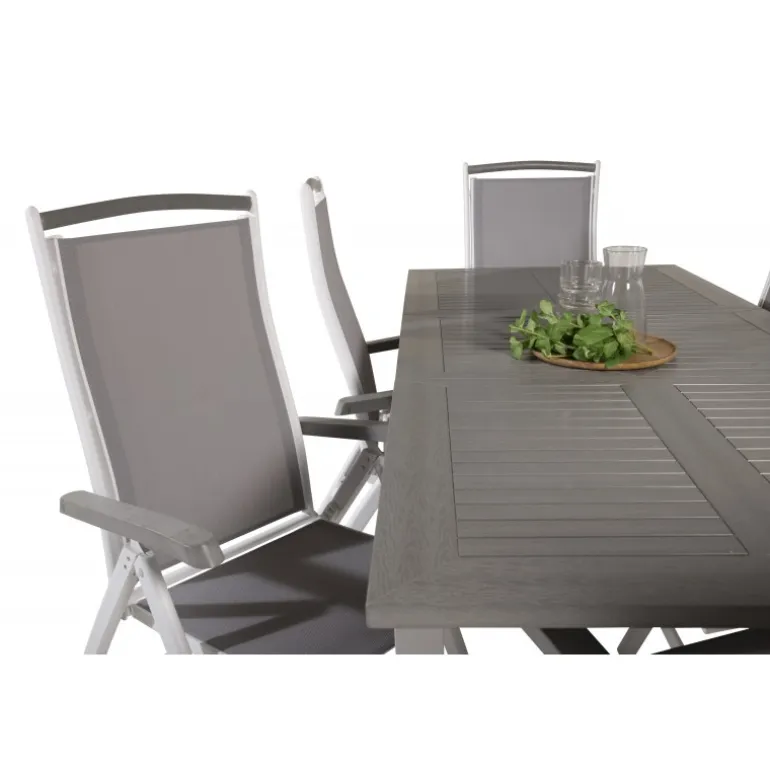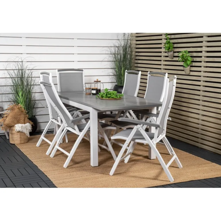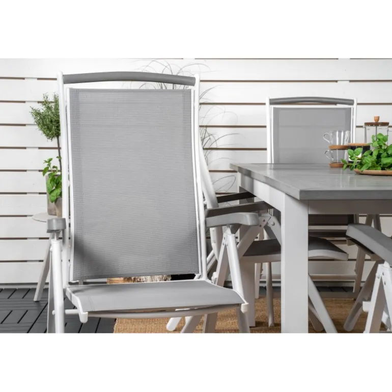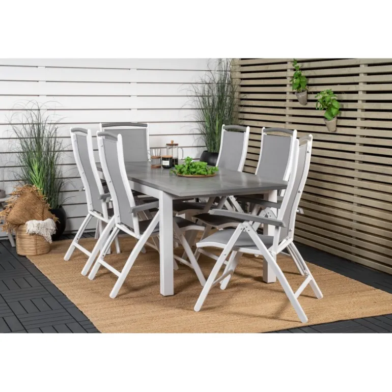 Køb af et forudkomponeret Loungesæt – Havemøbelsæt er både trendsikkert og praktisk! Her kombinerer vi vores Albany spisebord med vores siddevenlige Albany spisebordsstole med foldbare ryglæn. Lad din terrasse blive præget af dit nye iøjnefaldende Loungesæt – Havemøbelsæt, der er lige så godt til en solrig frokost som til en vidunderlig festmiddag.