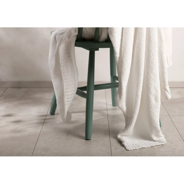 Ally Plaid i hvid er lavet af glansfuld chenille og polyester materiale, der giver en hyggelig og luksuriøs følelse. Denne plaid måler 130×170 cm og er perfekt til at holde dig varm på kolde aftener. Maskinvask ved 30 grader og hængetørring anbefales for at bevare dens kvalitet. For at undgå falmning, undgå direkte sollys. Brug en tekstilspray for at gøre stoffet lettere at rengøre.