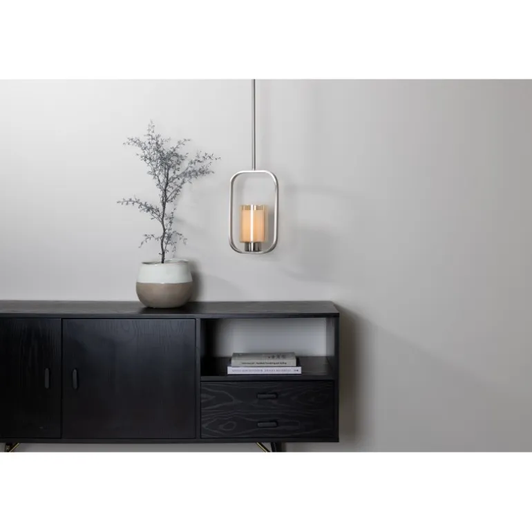 Aludra er en dekorativ og unik loftlampe! Den elegante stålramme kombineret med glaskabinettet i midten skaber et varmt og indbydende design. Lampen afgiver et behageligt, varmt lys, der skaber en hjemlig atmosfære i hjemmet. Aludra gør sig ekstra godt som vindueslampe og vil helt sikkert løfte stemningen derhjemme.