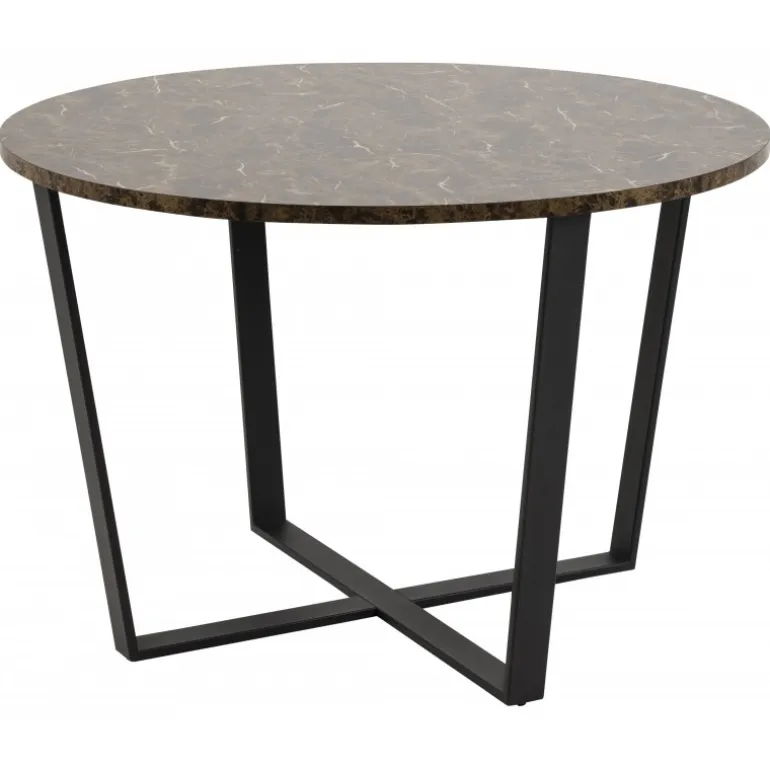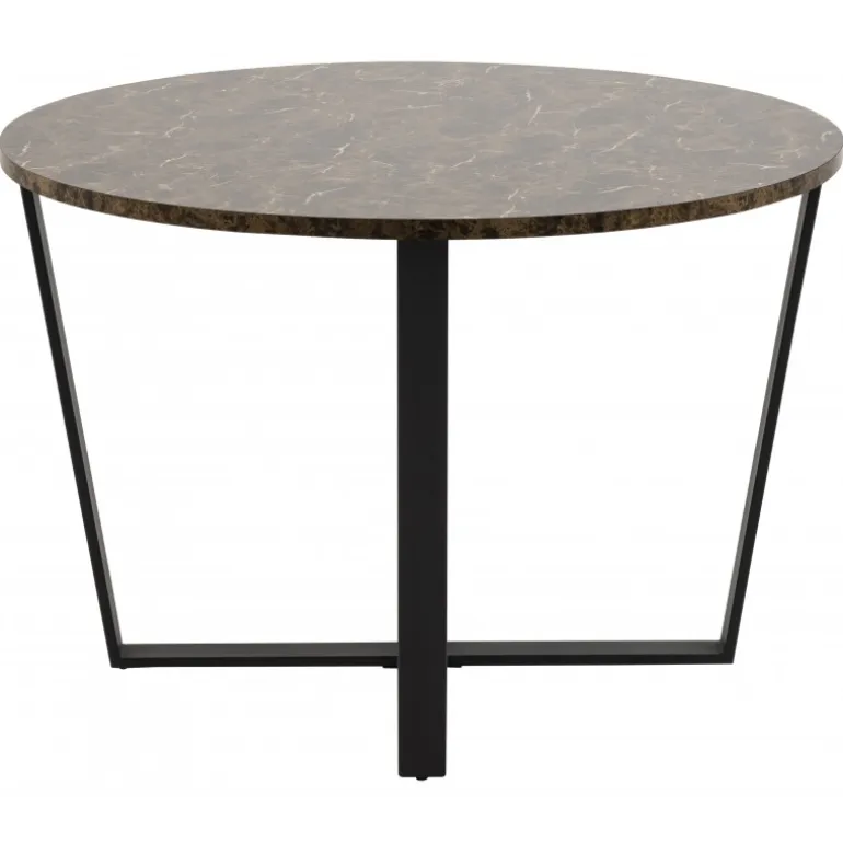 Amble spisebord bordplade melamin marmor print, brun, stel pulverlakeret ru, mat sort Ø:110 H:75 cm