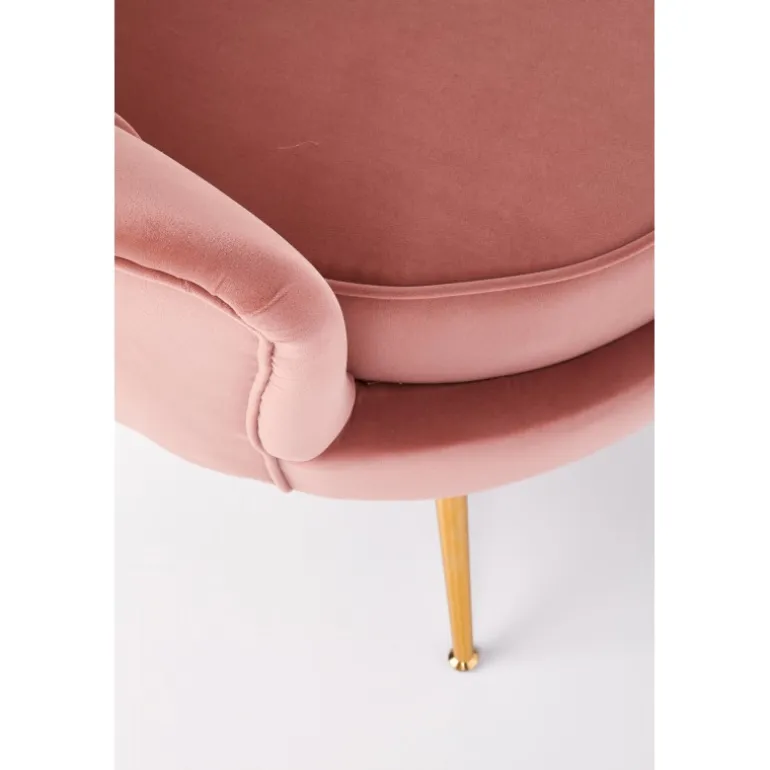 Opgrader dit hjem med den elegante AMORINITO lænestol i lyserød. Denne stilfulde lænestol kombinerer moderne design med komfort og er perfekt til ethvert opholdsrum. Med dens kromstål ben i guld og bløde polstring i lyserød stof, tilføjer den et strejf af luksus til din indretning. Målene på 83/77/77/45 cm gør den ideel til både små og store rum. Gør din afslapningstid mere behagelig med denne unikke lænestol.