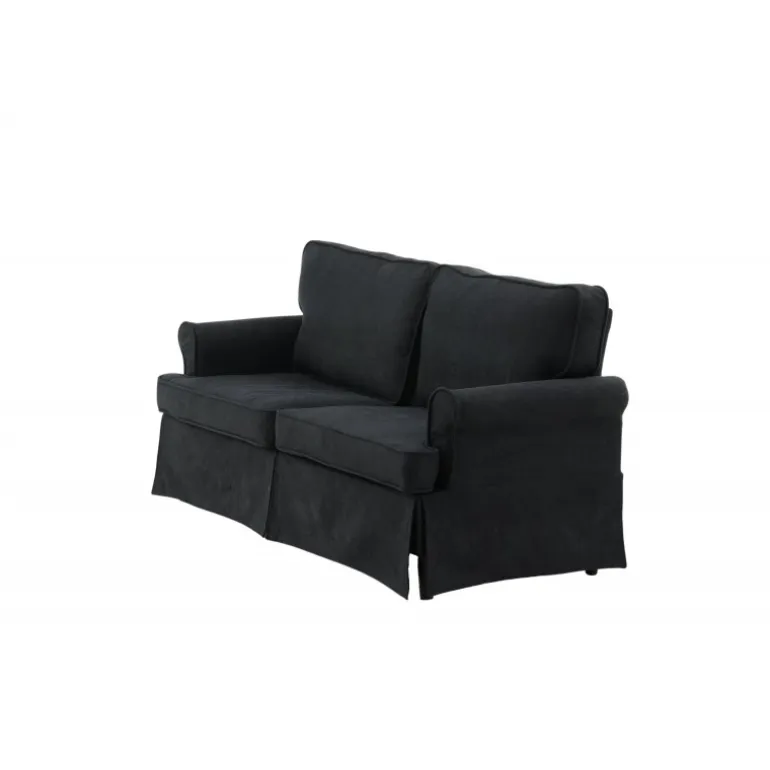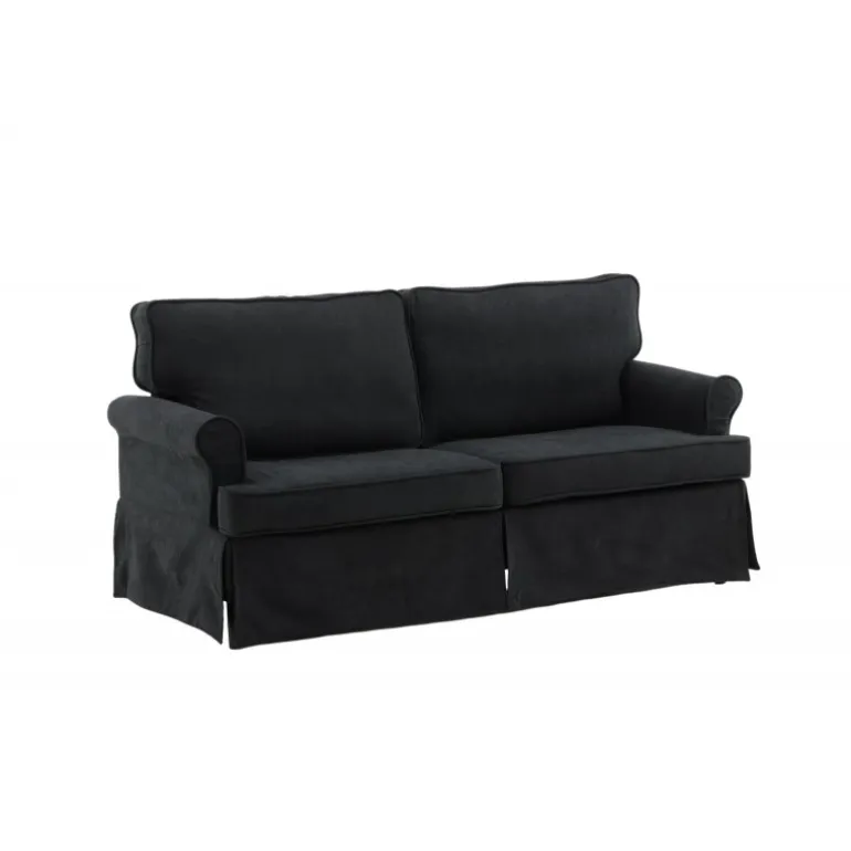 Vores Anton 2 personers sofa er indbegrebet af hygge, luksus og stil. Denne komfortable sofa fra Anton-serien bringer en utrolig stilfuld og indbydende stemning til dit hjem og forlænger din værdifulde afslapningstid. Den dristige sorte fløjlsbeklædning er både komfortabel og trendy, og den giver en elegant glans. Designet er tidløst med bløde skandinaviske former og har en charmerende sofaovertræk, der skjuler metalbenene. Giv dig selv et dejligt sted at slappe af, og lad denne sofa blive hjertet i din stue! Plejeråd: Fløjl har tendens til at få trykmærker, når luven ligger ned. Trykmærkerne kan få stoffet til at se slidt ud, hvilket er normalt for denne type materiale. Afhængigt af hvordan lyset falder, kan stoffet ændre sig i forskellige nuancer.