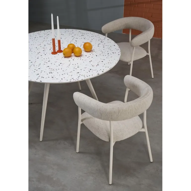 - Moderne design: Lastrico bordplade kombineret med hvidlakerede stålben.