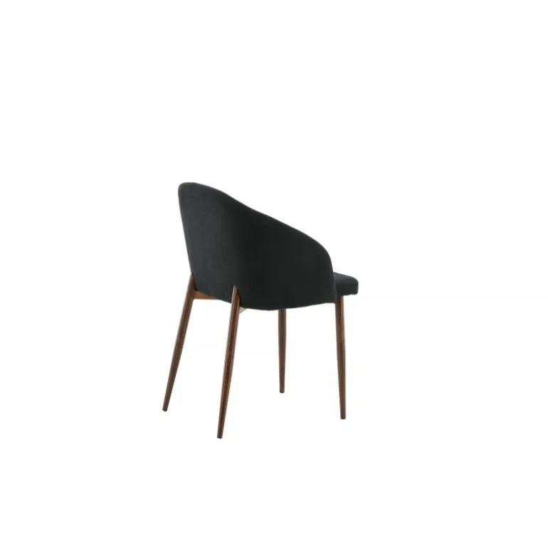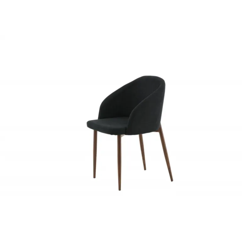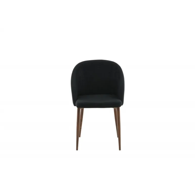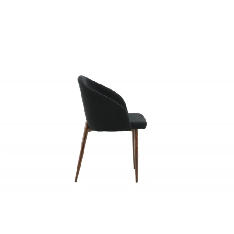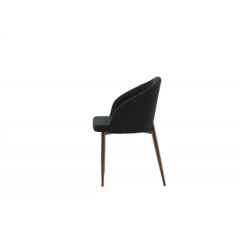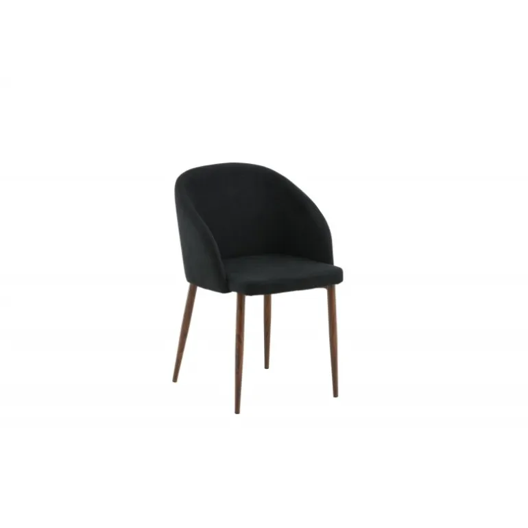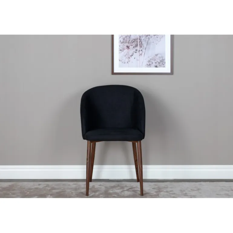 Arch spisebordsstol er en elegant og moderne stol med ben i valnød-rullet metal, der skiller sig ud med sit iøjnefaldende design! Den buede ryglæn og den flade sæde i sort polyesterstof med polstring sikrer, at du sidder komfortabelt i mange timer med familie og venner. Let samling kræves. Plejeanvisning: Brug tekstilspray for at imprægnere stoffet, før du begynder at bruge det; dette gør det også lettere at fjerne snavs og pletter i fremtiden. Fjern pletter med det samme, gnid ikke, men sug forsigtigt op med en klud.