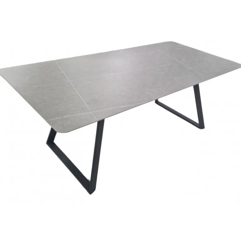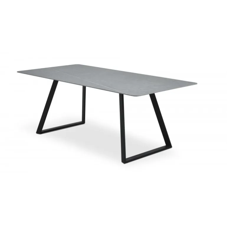 Bordpladen er konstrueret i grå keramik med en forbløffende marmorlignende finish, der tilføjer et strejf af elegance til ethvert rum. De sorte metalben sikrer ikke blot stabilitet, men tilføjer også et moderne og sofistikeret udtryk.