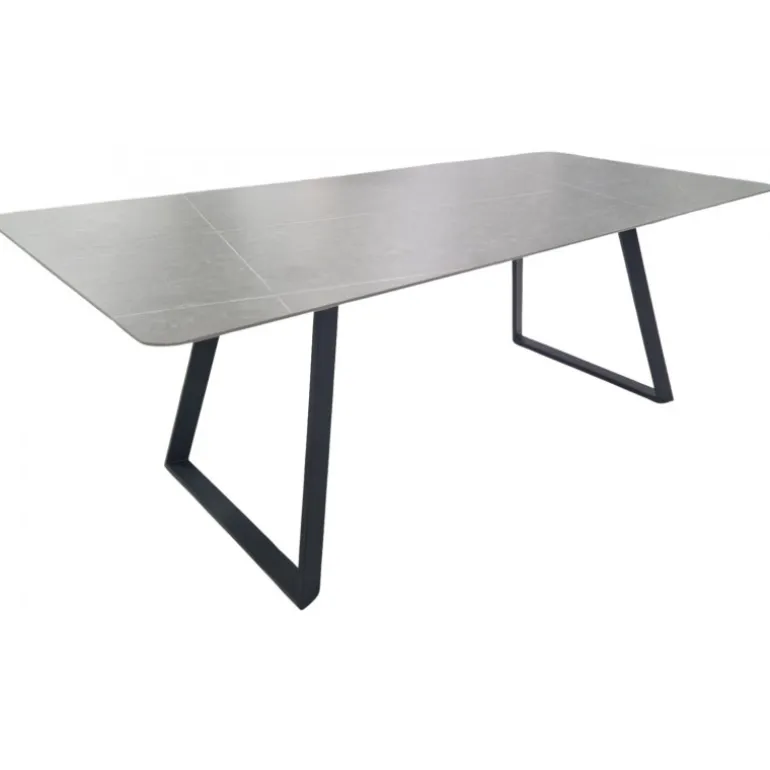 | Materialer | Grå keramik bordplade, sorte metalben |