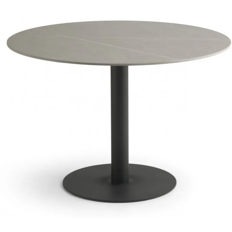 Bordpladen er konstrueret i grå keramik med en forbløffende marmorlignende finish, der tilføjer et strejf af elegance til ethvert rum. De sorte metalben sikrer ikke blot stabilitet, men tilføjer også et moderne og sofistikeret udtryk.