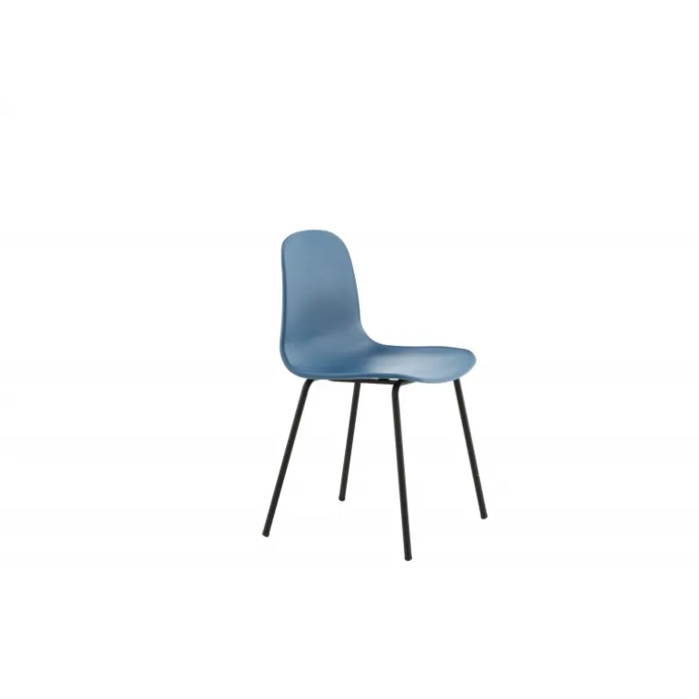 - Holdbart materiale: Ben i sort pulverlakeret stål og sæde i solid blå plastik.