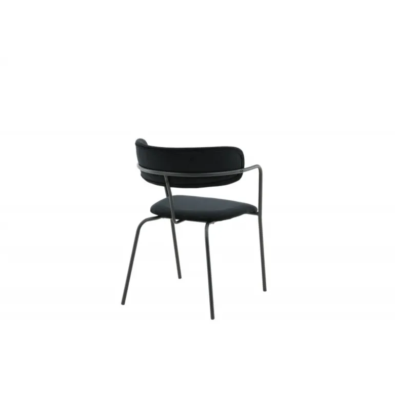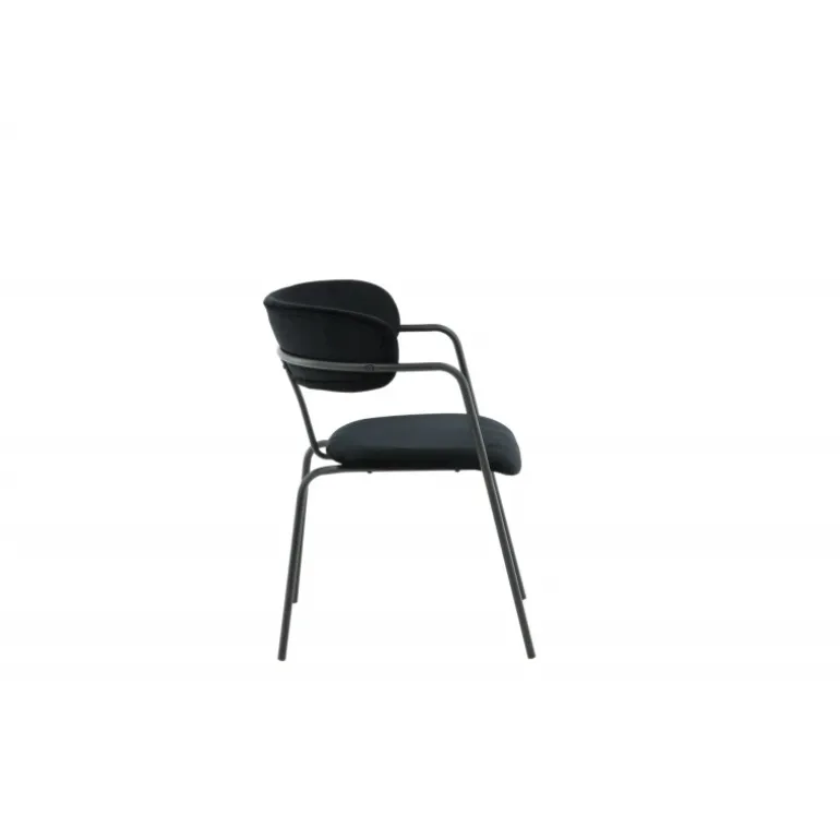 Stilfuld, praktisk og tidløs – en spisestol med alt det rigtige! Arrow har et minimalistisk design med ramme, ben og integrerede armlæn i sort pulverlakeret metal. Ryggen er let rundet i samme materiale som sædet, betrukket med stoppet sort velourstof. Lige så komfortabel som stilfuld, disse stole vil helt sikkert blive en succes i hjemmets hjerte! Lettere samling er påkrævet. Plejeråd: Brug tekstilspray til at imprægnere stoffet, inden du begynder at bruge det, det vil også gøre snavs og pletter lettere at fjerne i fremtiden. Fjern pletter med det samme, gnid ikke, men prøv at opsuge forsigtigt med en klud.