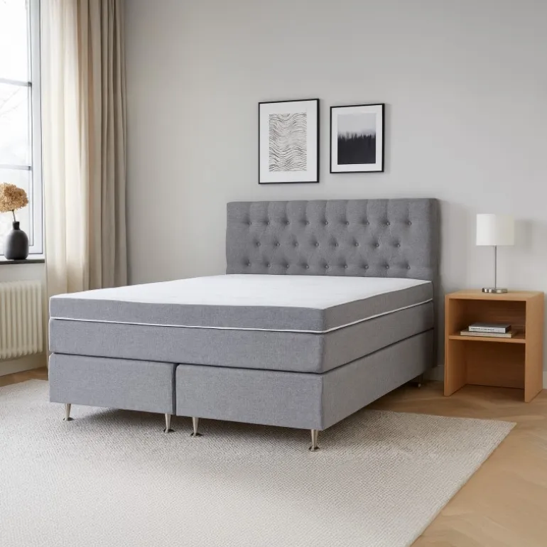 - Samlet komforthøjde ca. 74 cm (bund 28 cm + madras 21 cm + top 10 cm + ben 15 cm)