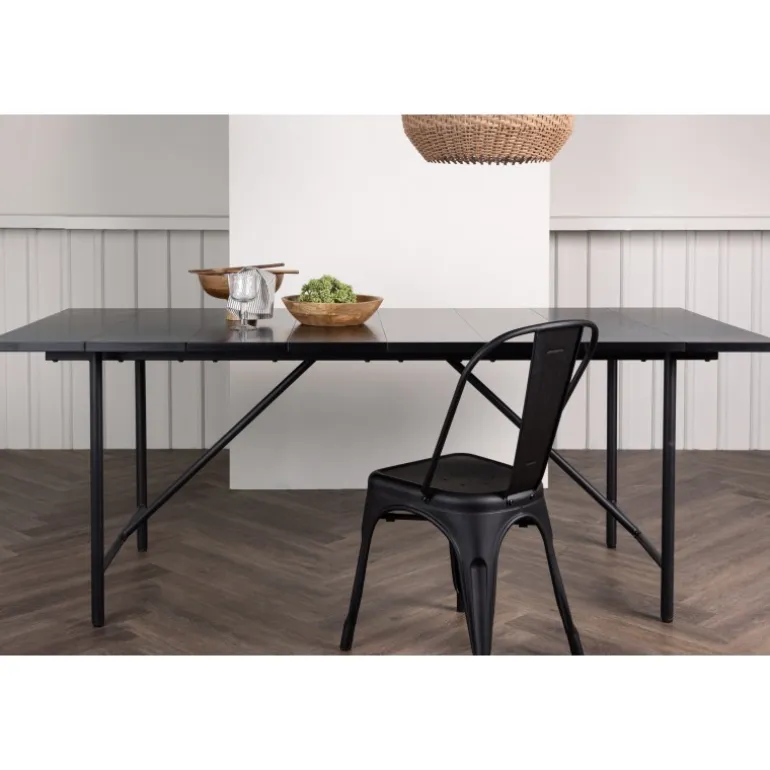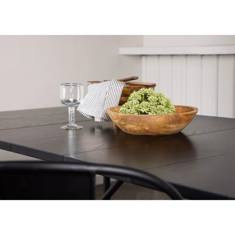 Minimalistisk design passer altid ind! Giv dit hjem et flot løft med dette smukke spisebord fra Astrid-serien. Spisebordpladen er tynd i en mat sort farve i MDF med åretegninger. Det smalle understel giver et luftigt indtryk og åbner op for atmosfæren i rummet. Match med komfortable stole og nyd en komplet Spisebordssæt i hjertet af hjemmet!