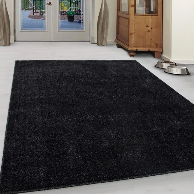 Ata Kortluvet tæppe Ensfarvet – Antracit