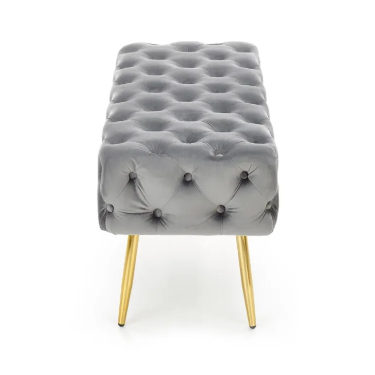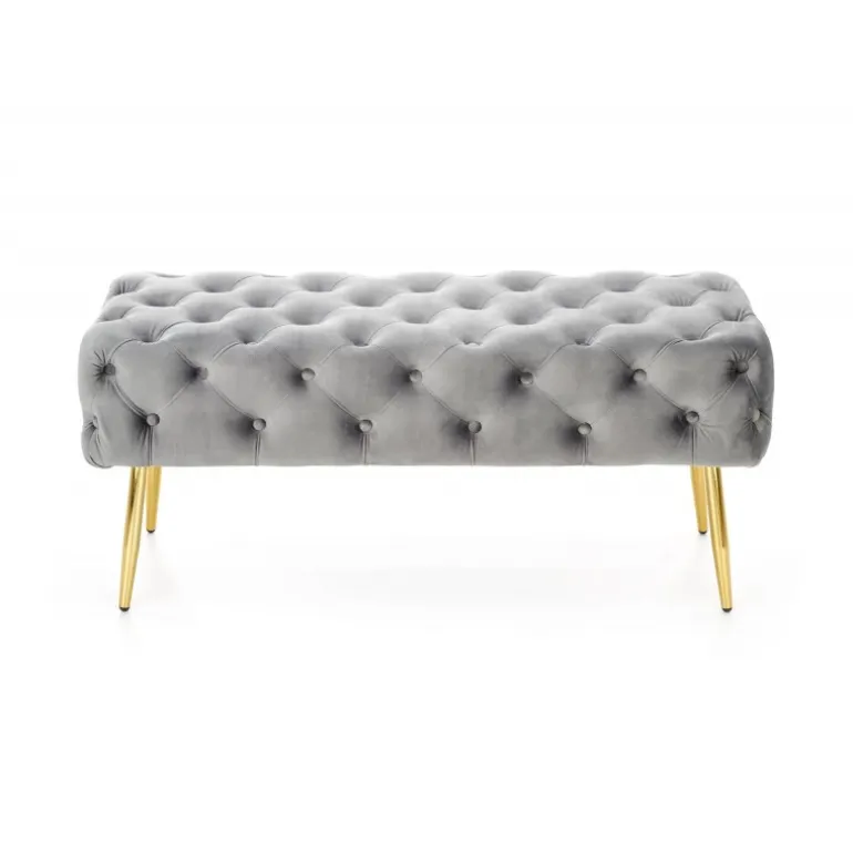 Oplev elegance og komfort med ATHENA Bænken. Denne stilfulde bænk er designet i en kombination af luksuriøst velourstof i grå og kromstål ben i guld, hvilket tilføjer et sofistikeret touch til enhver indretning. Med dimensionerne 100/45/40 cm passer denne bænk perfekt ind i både små og store rum. ATHENA Bænken er ikke kun et smukt møbel, men også yderst funktionel og holdbar, ideel til din daglige afslapning.