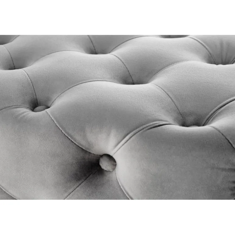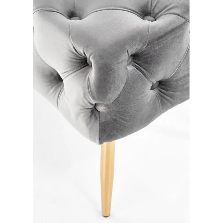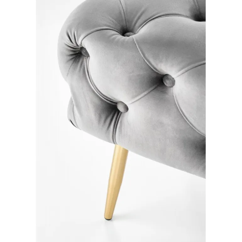 - Luksuriøst Design: Grå velourstof kombineret med guld kromstål ben.