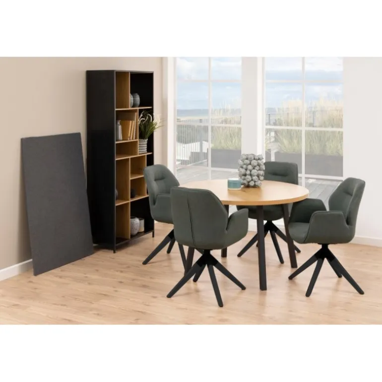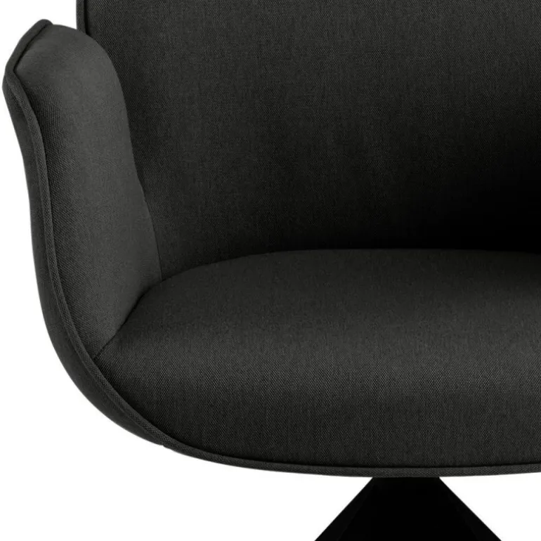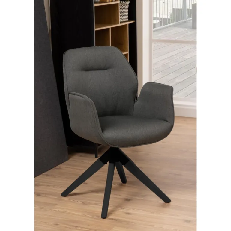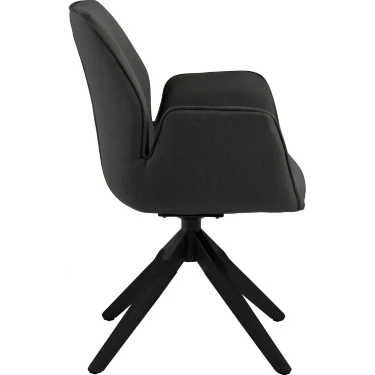 Aura spisebordsstol Town stof mørkegrå 33, armlæn centerben gummitræ, sortmalet, lak, retur drej, pakning 1 stk