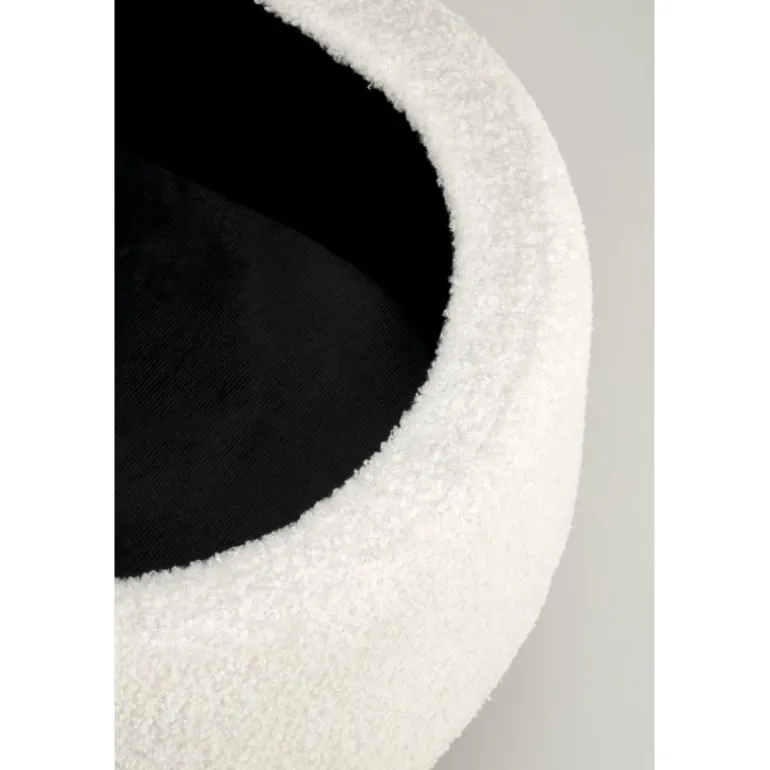 - Stilfuldt design: Cremefarvet boucle stof kombineret med pulverlakeret stål.