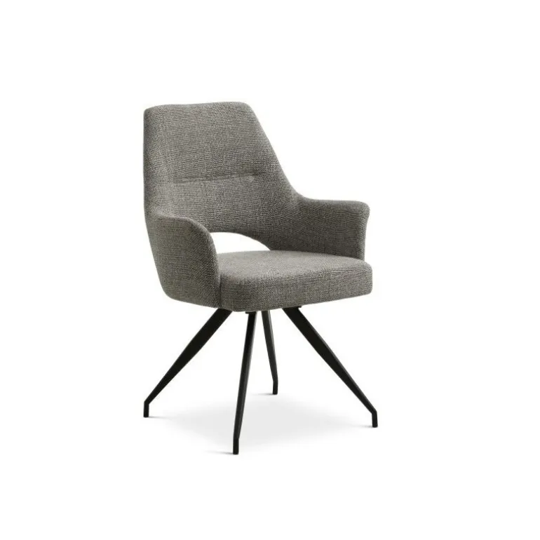 Stolen er produceret i Grå Chacha stof og har en 180 graders auto-returfunktion. Metalbenene er belagt med mat sort pulver.
