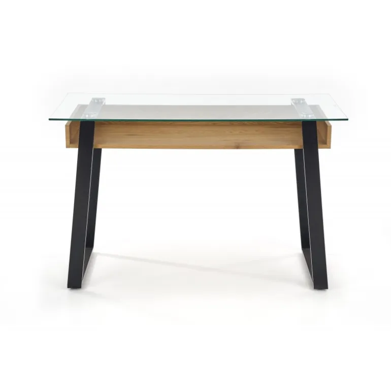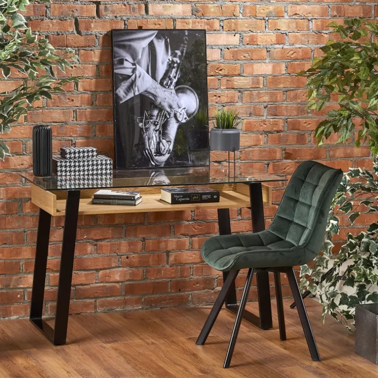 Oplev B36 Skrivebord, en ideel løsning til dit kontor eller hjemmearbejdsplads. Med dimensioner på 120/60/75 cm tilbyder dette skrivebord rigelig plads til dine arbejdsopgaver. Det er fremstillet af glas, lamineret MDF og pulverlakeret stål, hvilket sikrer både stil og holdbarhed. Den gyldne eg og Sorte farvekombination tilføjer et moderne touch til ethvert rum. Dette skrivebord er designet til at optimere din produktivitet samtidig med at det ser fantastisk ud.