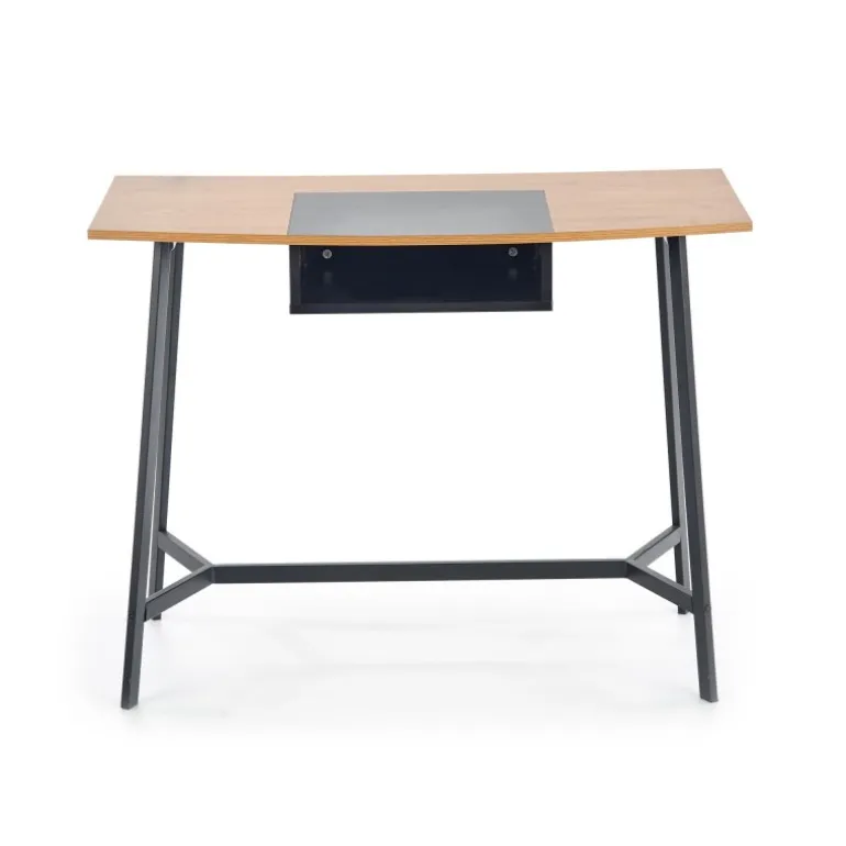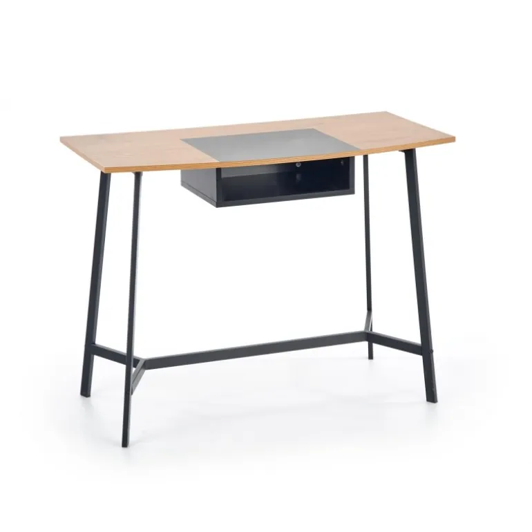 Oplev B41 skrivebordet – det ideelle valg til dit kontor eller hjemmearbejdsplads. Med dimensionerne 100/50/76 cm passer dette skrivebord perfekt i ethvert rum. Fremstillet af lamineret MDF og pulverlakeret stål, tilbyder det både holdbarhed og stil. Den elegante kombination af gylden eg og Sort farve giver et moderne og sofistikeret udseende.