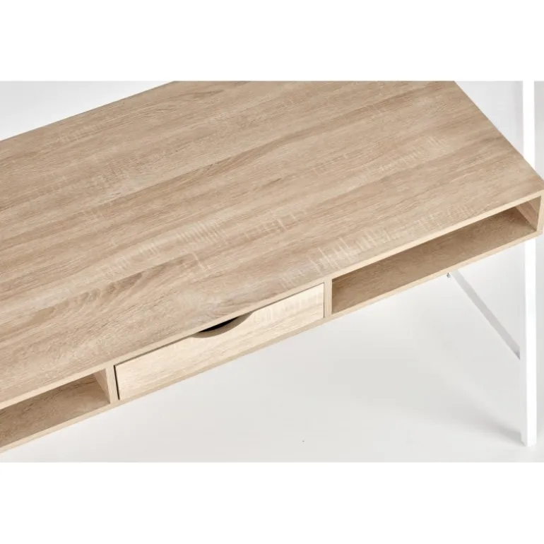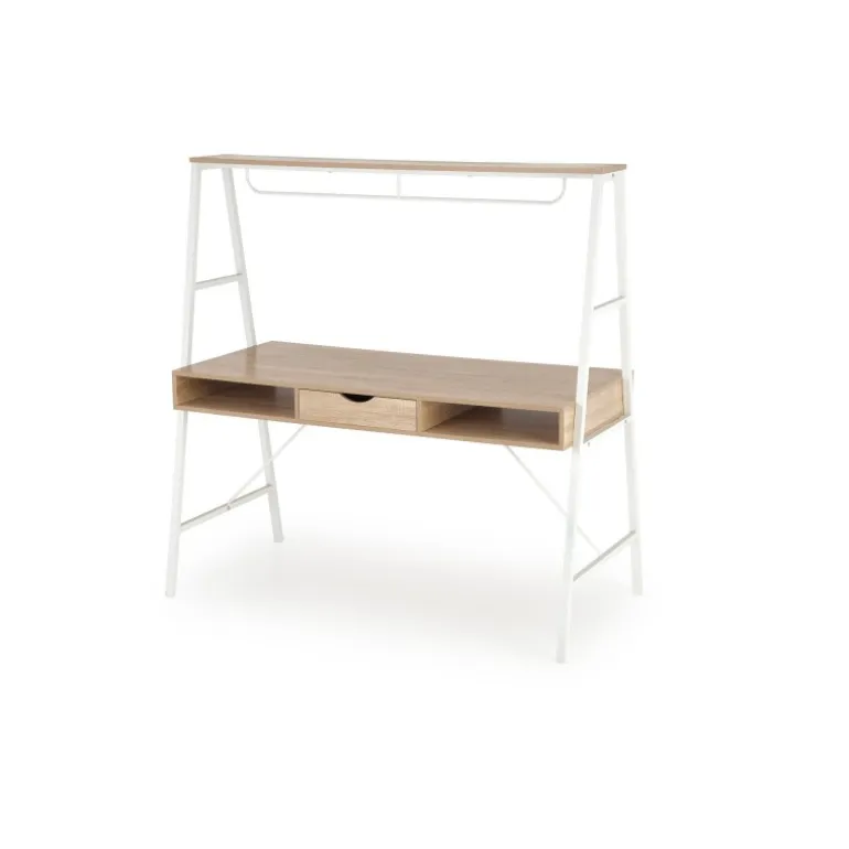 Opgrader dit kontor med dette stilfulde B48 skrivebord i Sonoma Eg og Hvid. Med dimensionerne 139/60/140 cm tilbyder dette skrivebord en dobbelt arbejdsstation, perfekt til både samarbejde og individuel koncentration. Fremstillet af holdbart lamineret spånplade med melamin og pulverlakeret stål, kombinerer det robusthed med et moderne design. Dets elegante finish i Sonoma Eg og Hvid vil tilføje en sofistikeret touch til enhver arbejdsplads.