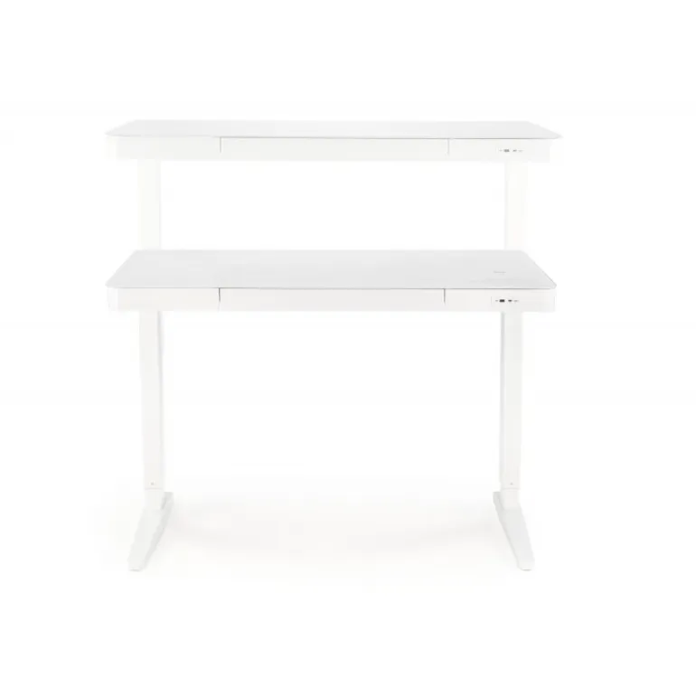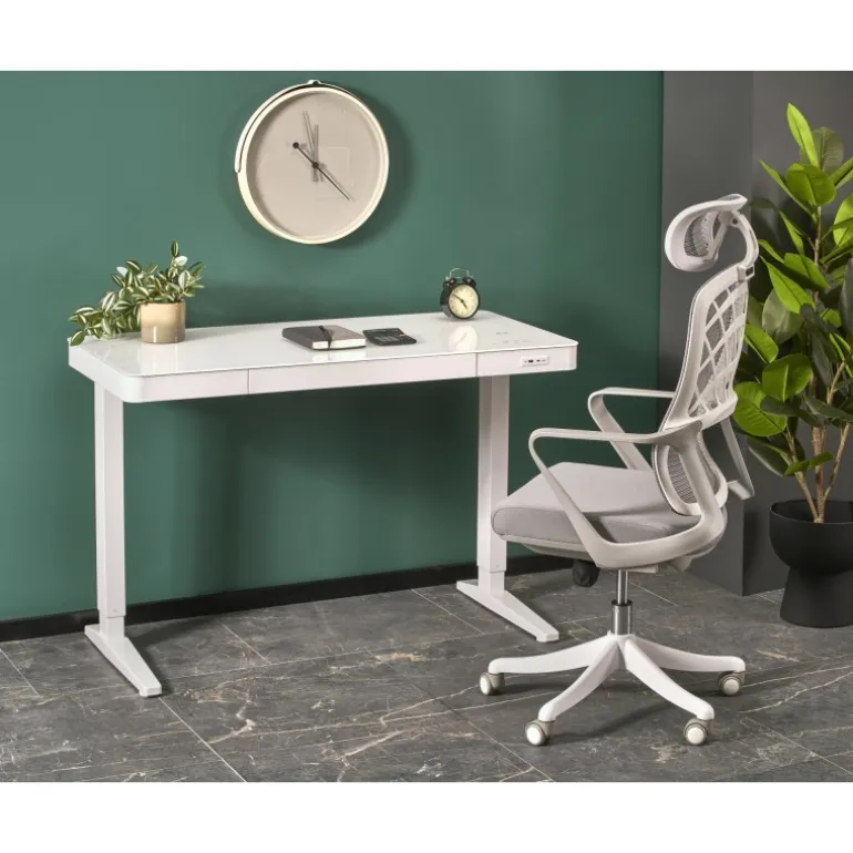 Oplev den ultimative fleksibilitet og komfort med B52 skrivebord med justerbar højde. Dette moderne skrivebord, der måler 120/60/77-120 cm, er designet til at forbedre din arbejdsoplevelse. Med touch-kontrolknapper, trådløs opladning og USB-porte er dette skrivebord perfekt til den moderne arbejdsplads. Lavet af glas og pulverlakeret stål, og i en elegant hvid farve, kombinerer B52 skrivebordet stil og funktionalitet. Juster højden efter dine behov og arbejd mere effektivt og sundere.