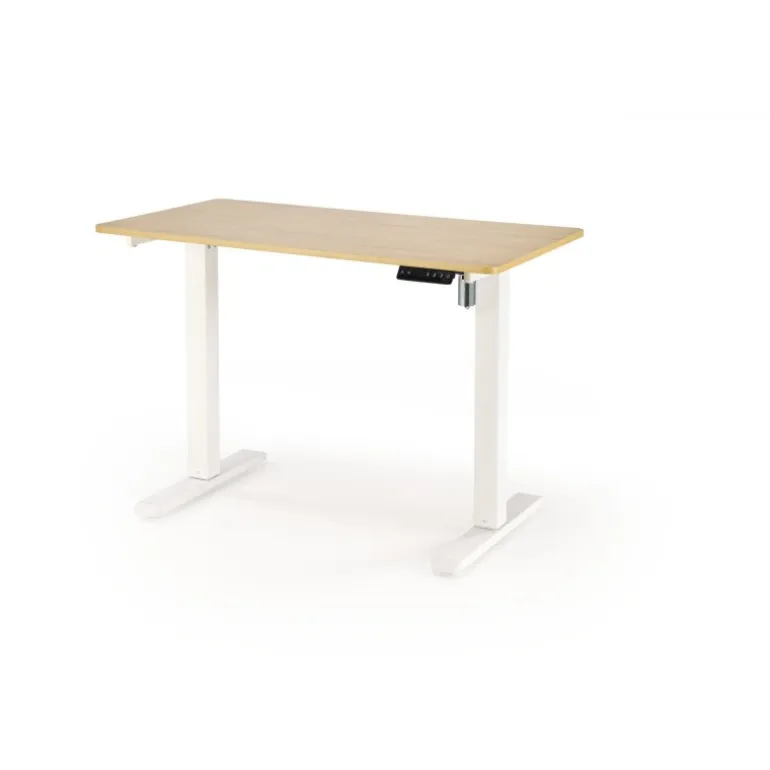 Opdag B53 Skrivebord med Justerbar Højde i en elegant kombination af gylden eg og hvid. Dette skrivebord er designet til at forbedre din arbejdsoplevelse med sin justerbare højde, der spænder fra 73 cm til 118 cm. Fremstillet af laminatspånplade med melaminbelægning og pulverlakeret stål, tilbyder det både holdbarhed og stil. B53 Skrivebord er perfekt til hjemmekontoret eller studieværelset og sikrer komfort og effektivitet i dit daglige arbejde.