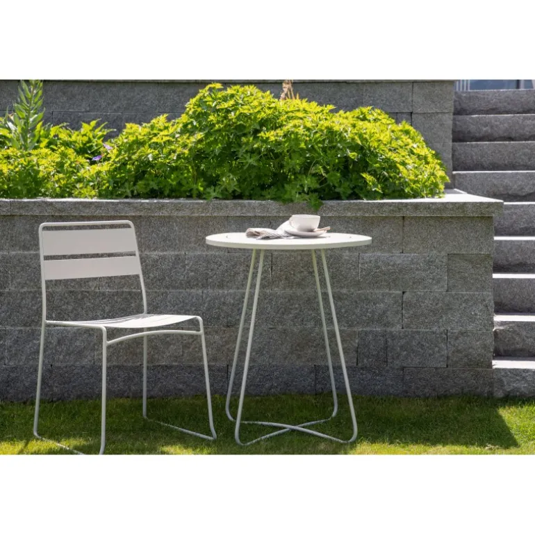 Bacong – et stilfuldt cafébord i en tidløs beige farve og smukt design. Fremstillet af beige stål, hvilket gør bordet både praktisk og holdbart. Den lette vægt gør, at bordet er nemt at flytte og passer lige så godt ude i haven som på den lille altan. Den runde bordplade og smalle ben giver et minimalistisk indtryk og er perfekt til eftermiddagskaffen. Nyd sommerens vidunderlige øjeblikke!