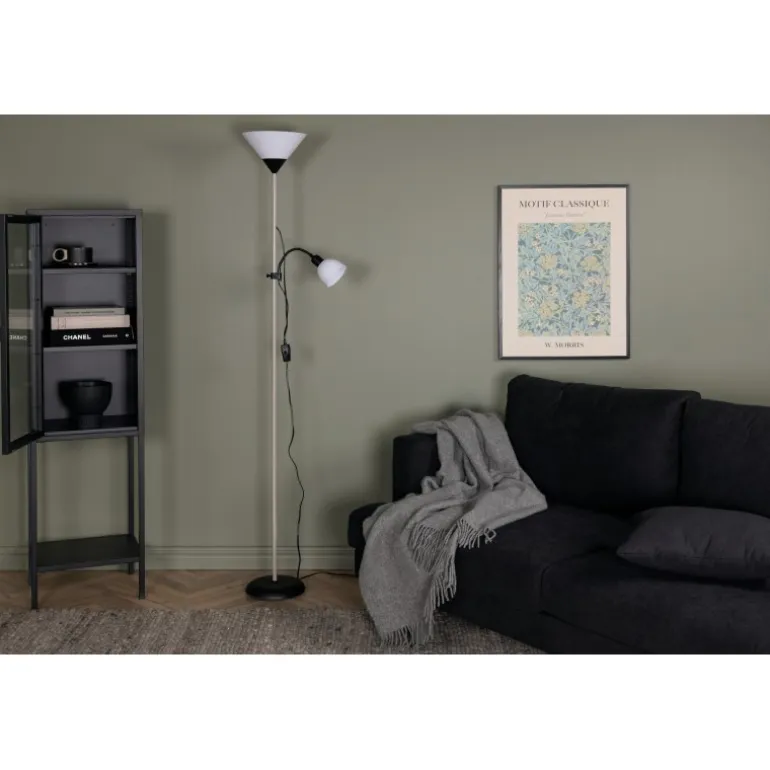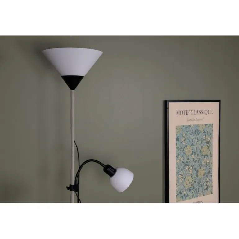 Bagasi er en høj gulvlampe med en fleksibel arm i et elegant og moderne design. Den fleksible arm kan vinkles og er perfekt til punktbelysning. Lampen passer perfekt ved siden af sofaen eller i soveværelset, hvor du kan kombinere generel belysning med punktbelysning!