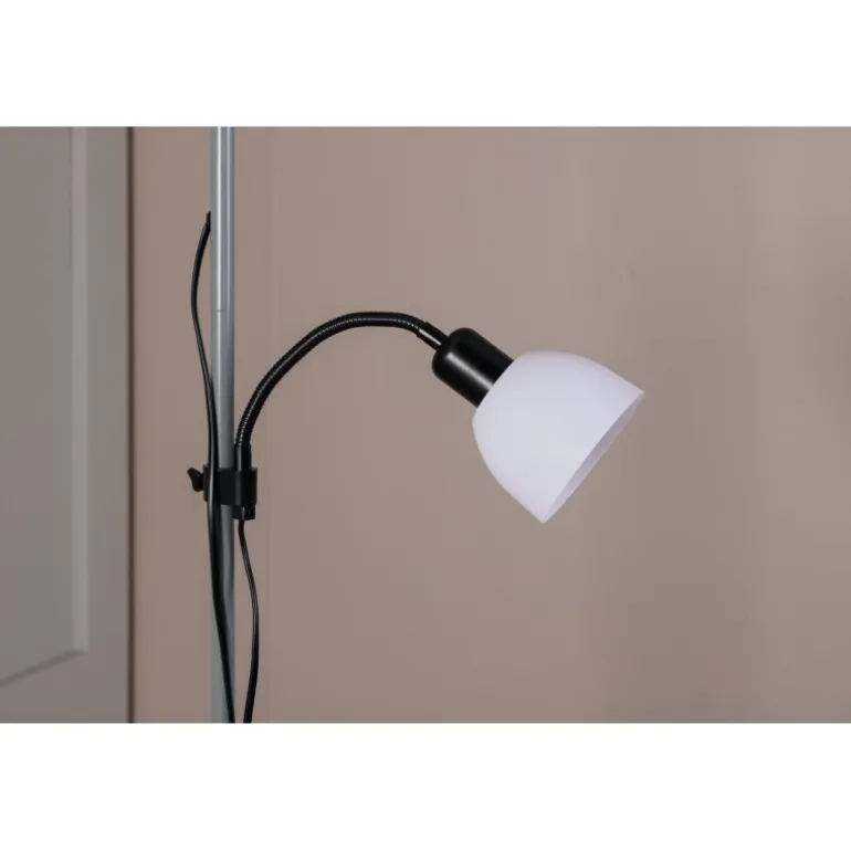 Bagasi er en høj gulvlampe med en fleksibel arm i et elegant og moderne design. Den fleksible arm kan vinkels og er perfekt som punktbelysning. Lampen passer perfekt ved siden af sofaen eller i soveværelset, hvor du kan kombinere generel belysning med punktbelysning. Stålmaterialet sikrer holdbarhed og stil, mens de tre farvevalg (Sort, Lysegrå, Hvid) gør det nemt at matche din indretning.