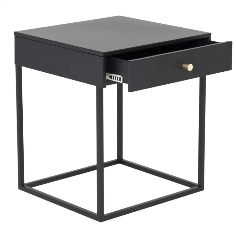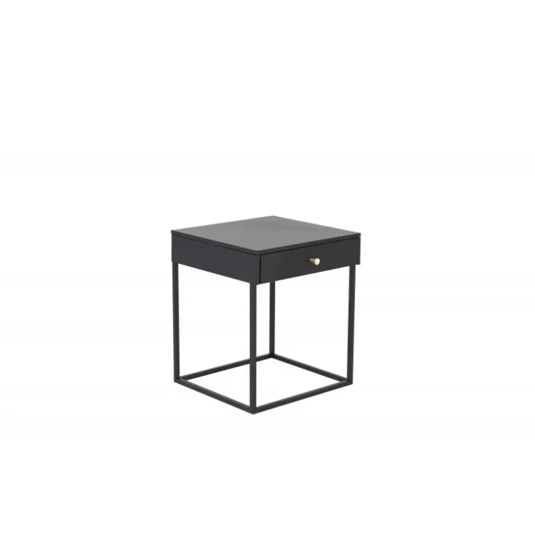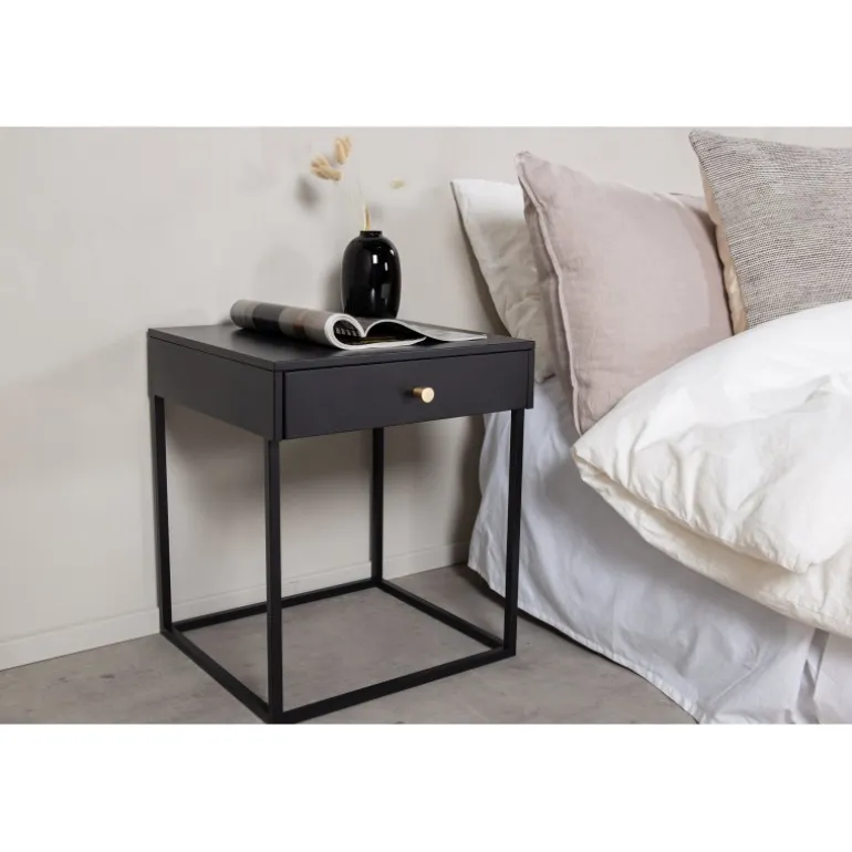 Bakal natbord i serien Bakal tilbyder alt, hvad du kunne ønske dig både praktisk og æstetisk. Med sin stilfulde, lige nordiske form er designet moderne og let. Boksen med messingknop giver glat opbevaring til alt, hvad du ønsker at have lige ved hånden. Den pulverlakerede sorte stål giver natbordet en elegant finish og gør det nemt at matche med anden indretning. Tip: Fungerer også godt som hjørnebord eller sidebord i stuen. Lettere samling er påkrævet. Plejevejledning: Aluminium og krom er to materialer, der afviser snavs og væsker. Vær dog opmærksom på, at vand kan forårsage pletter og rust. Sørg derfor for at tørre overfladen af med en blød, fugtig klud og sæbevand. Hvis pletter eller rust er for genstridige, anbefales en blød klud fugtet i ren alkohol.