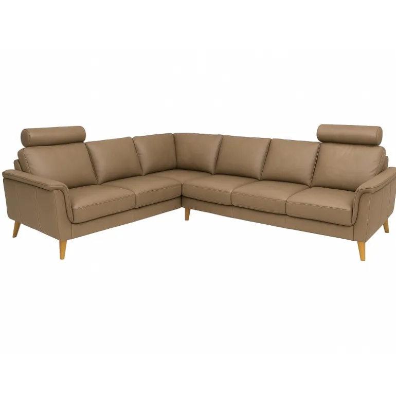 Denne hjørnesofa er en smuk blanding af bløde, runde former og elegante ben, der giver ethvert rum en følelse af luksus.