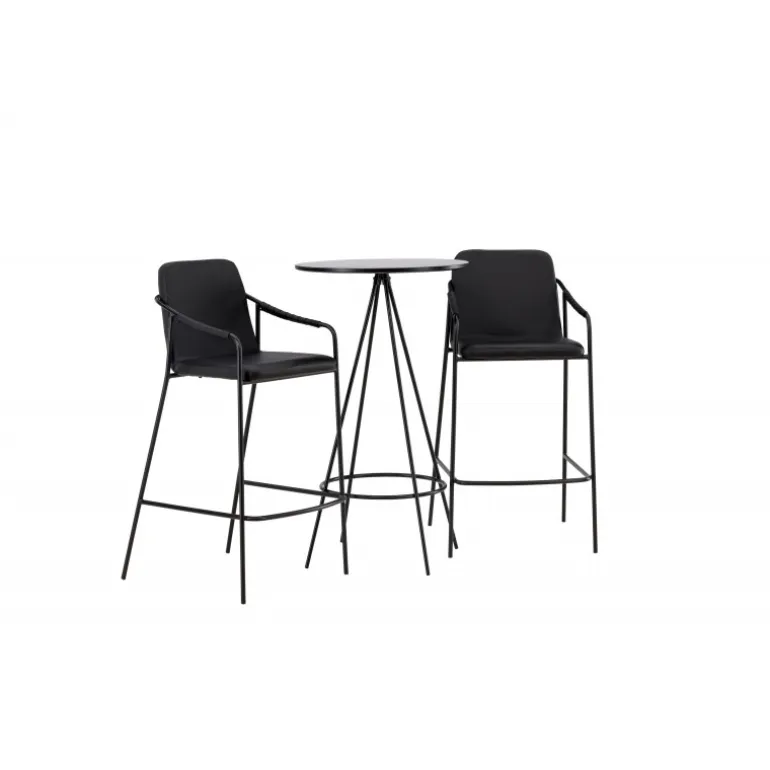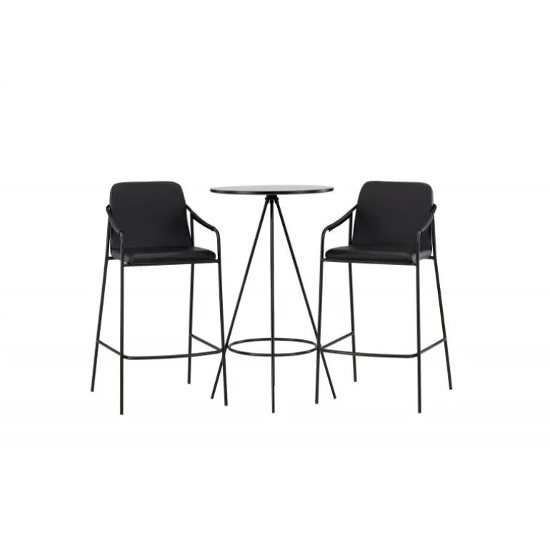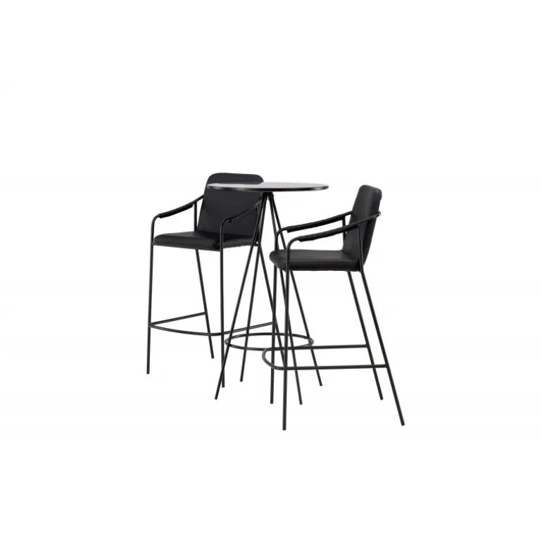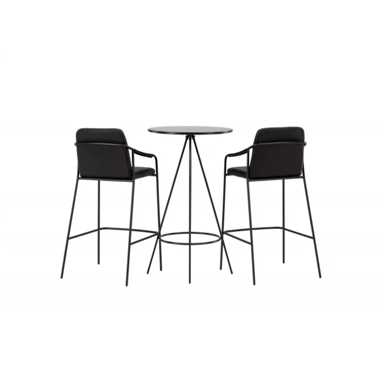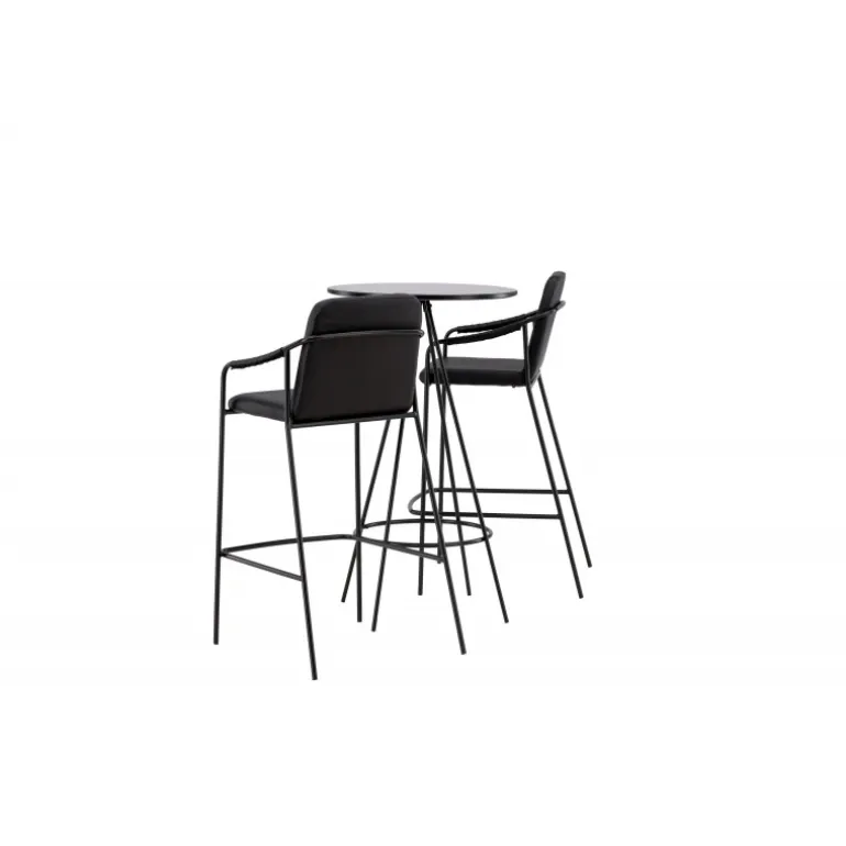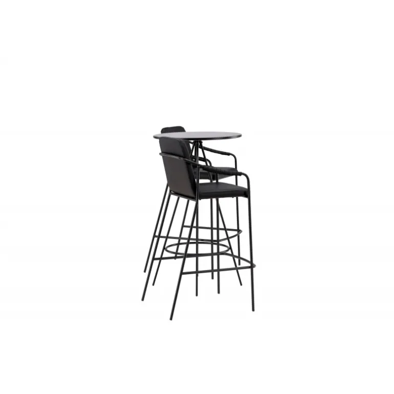 Det bliver ikke en bedre kombination end dette! Bistro barbordet har et minimalistisk, skandinavisk design med en rund bordplade i sort MDF med finer. De luftige, kegleformede bordben er let udadgående i sort metal og har en integreret ramme til fodstøtten. Her sammen med sorte barstole fra serien Tvist. Stolen har et polstret sæde og fuldt polstret design i sort PU med minimalistiske stoleben og integrerede armlæn i sort stål. Det skal føles lige så indbydende som det er komfortabelt! Bordets dimensioner: 60 cm.