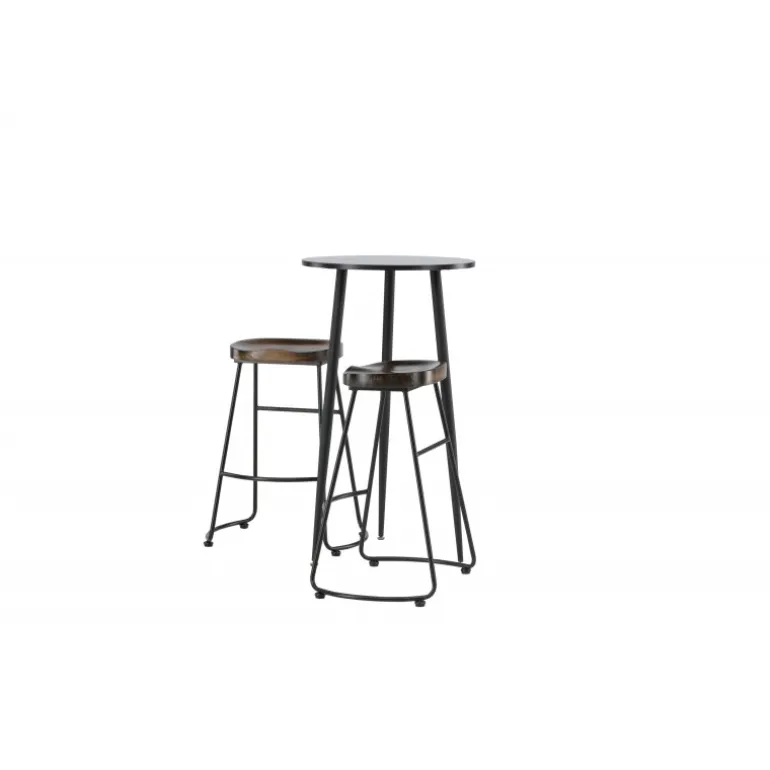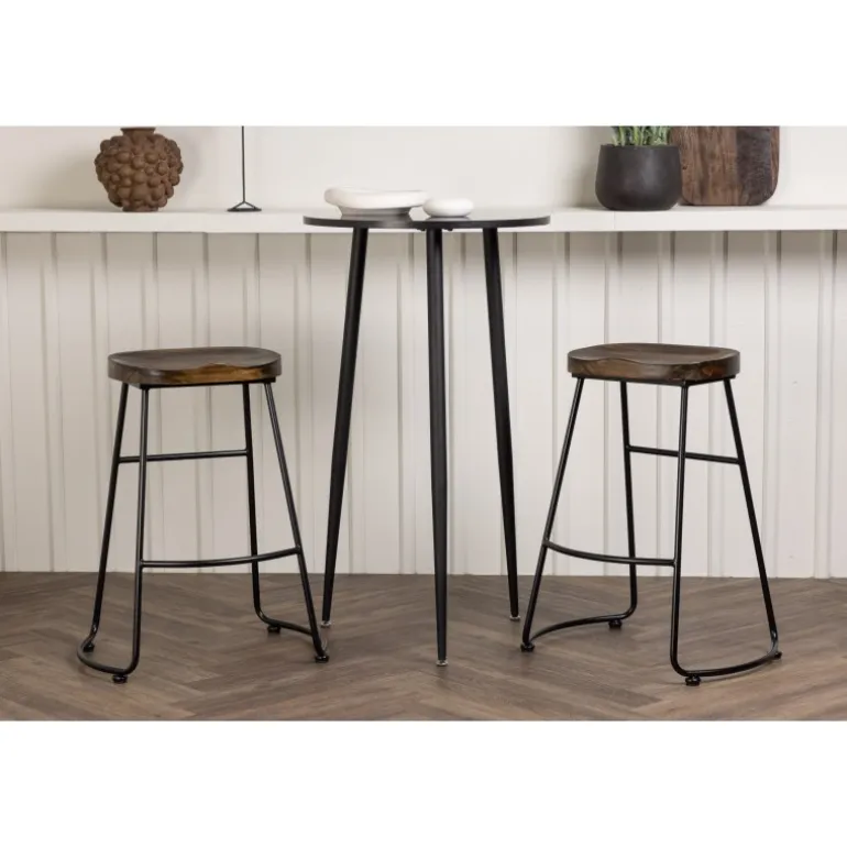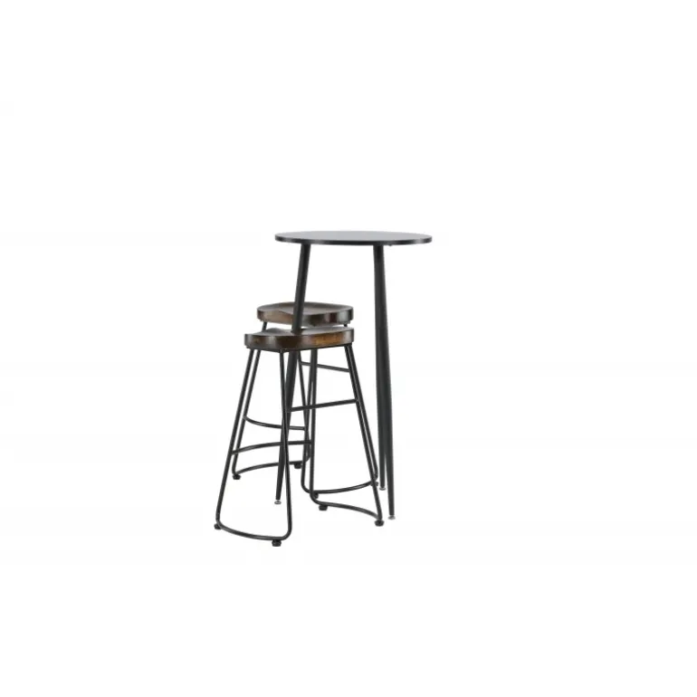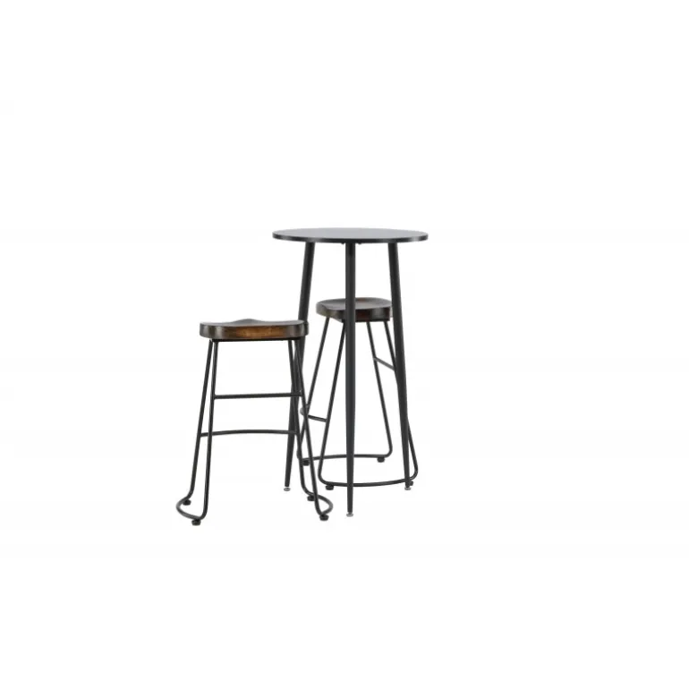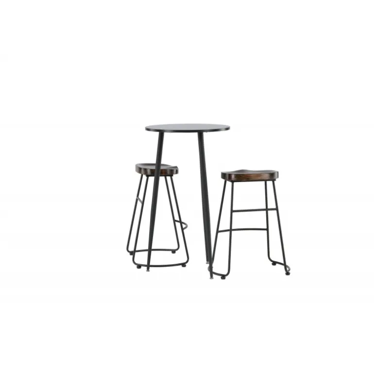 Rustikt og stilfuldt! Den vidunderlige Plaza barbord har en rund bordplade i sort MDF, og bordbenene er let udadbuede i sort metal. Her i en stilfuld kombination med barstole fra Ozark-serien. Stolen har et klassisk design med et sæde i mørkt træ, formet for at være så komfortabel som muligt. Den sorte stålbase er stabil og har en integreret fodstøtte. Indret det lille køkken i jordfarver! Borddimensioner: 60 cm.