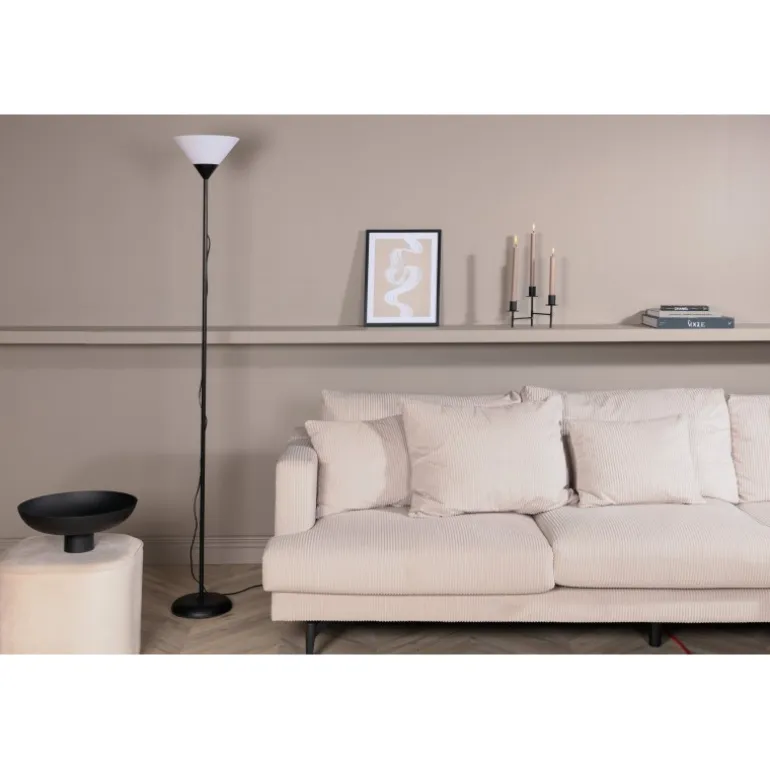 Den perfekte gulvlampe til stuens hyggelige hjørne! Batang har et smukt og yndefuldt design med sin tynde og lige stil, der passer ind i de fleste rum og husstande. Lampen har en dejlig sort farve på stander og fod, kombineret med en hvid skærm, hvilket skaber et stilfuldt og moderne indtryk! Nemt at montere og holdbar konstruktion gør denne lampe til et oplagt valg for enhver bolig.