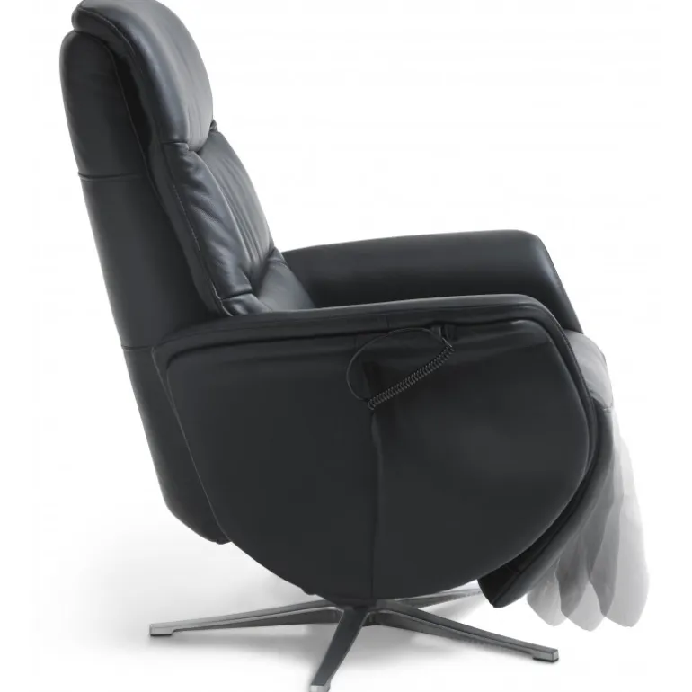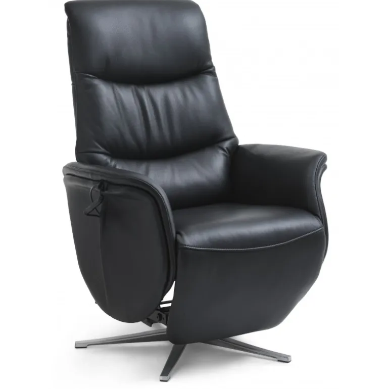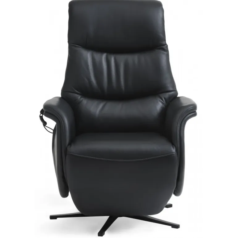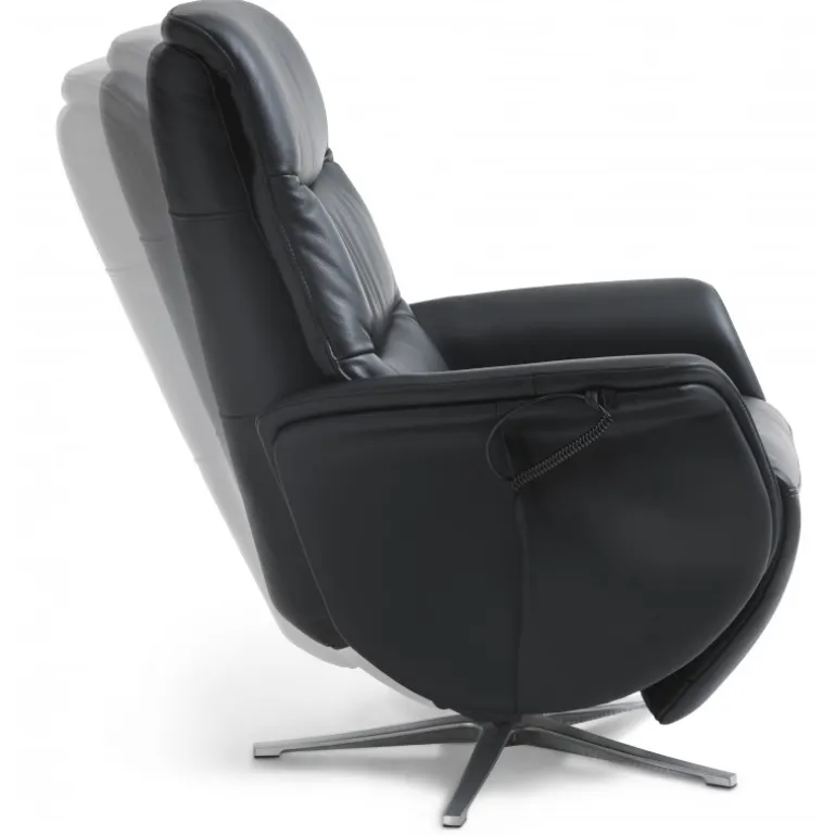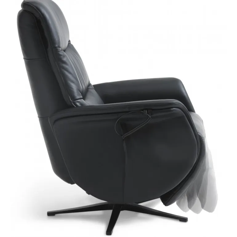 Bellahøj lænestol i Semianilin ægte læder med indbygget skammel og løftefunktion